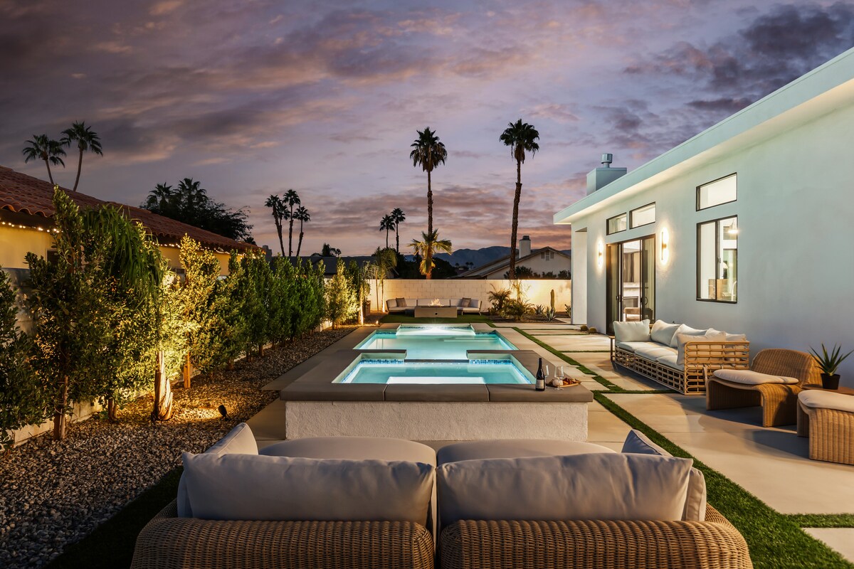 Maison spacieuse adaptée aux chiens avec une piscine privée chauffée, une table de billard, une baignoire jacuzzi, des lits très confortables, une grande cour arrière, un patio couvert, un barbecue à gaz, une télévision connectée 65 pouces, un canapé familial géant, un chargeur de véhicule électrique, une connexion Wi-Fi de 500 mbs. À proximité du golf de classe mondiale, du tennis, du festival de musique Coachella, du centre-ville de Palm Springs, du tramway aérien, de la randonnée pittoresque, du zoo du désert vivant. Chauffage de la piscine : gratuit de mai à octobre et 50 $ / jour ou 1100 $ / mois de novembre à avril. Les chiens doivent être sélectionnés lors de la réservation.