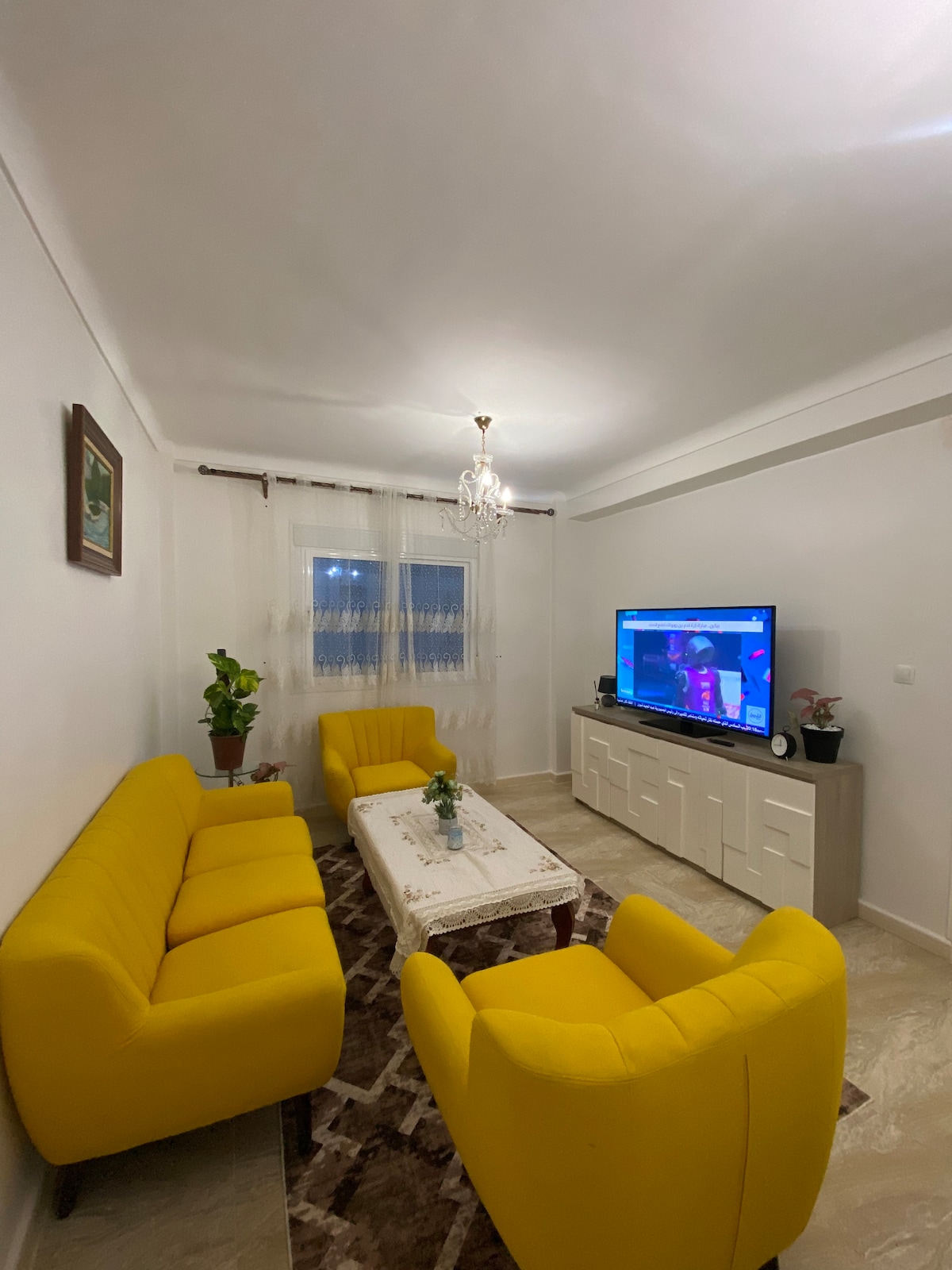 appartement F3 complètement refait à neuf à Mostaganem (quartier la salamandre) 200m du front de mer (restaurants, cafés, glaciers...) 100m de la station de tram (tram qui depose juste en face du parc d attractions MOSTALAND notamment) Station de taxi au pied de l immeuble Quartier avec toutes les commodités (mosquée, boulangerie, primeur, boucherie, supérette, pharmacie....) Appartement bien équipé (machine à laver, plaque de cuisson, micro-onde, bouilloire, tv plasma, climatiseur...)