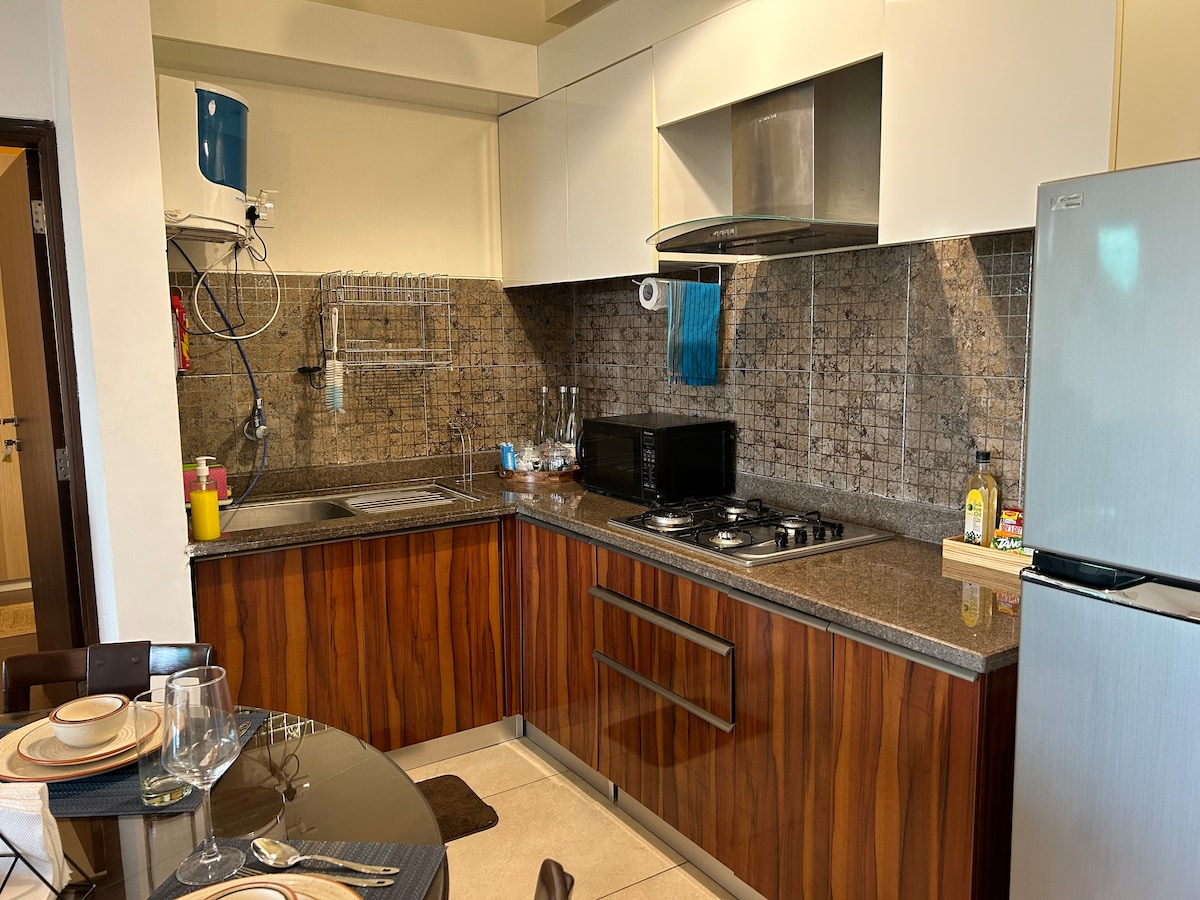 Cozy 1BHK, 8 mins from Mandwa Jetty—your lush green escape! Perfect for a breezy weekend, relaxing workcation, or longer stay. Sunlit living room, cloud-like queen bed, balcony for morning coffee, and a chic bathroom with rainfall shower. Fast Wi-Fi, iron, hair dryer, and essentials included. Unwind in quiet surroundings with beaches and cafés nearby, with Swiggy and Zomato delivering to the area for added convenience. Where work meets wanderlust—come recharge by the sea!
