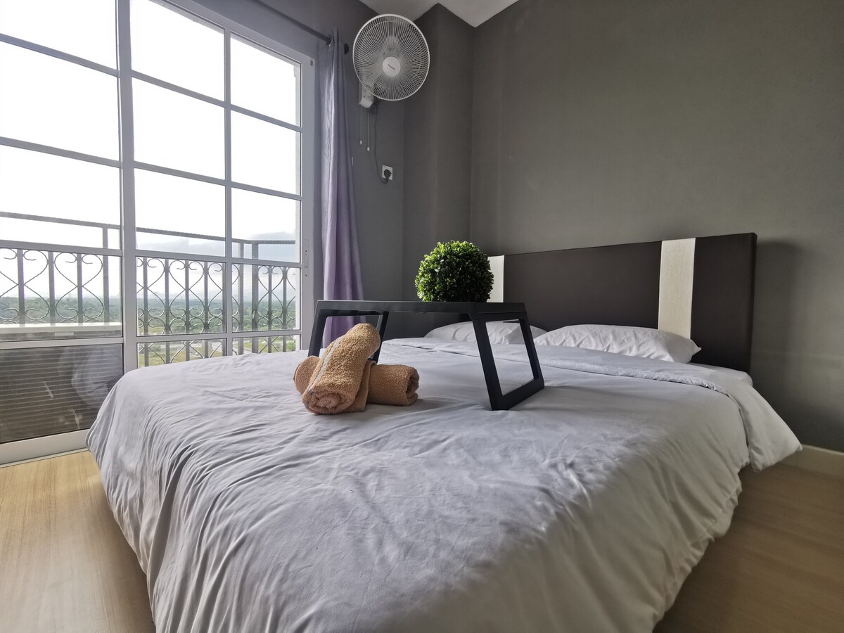 High-floor corner unit with 2 balconies where you can enjoy scenic mountain and lake views. The space is fitted with a King-sized bed. - Air conditioning - Ceiling fan - Water dispenser - Water heater - Hairdryer - Washer - Towels - Refrigerator - Microwave - Plates, bowls & cutlery ■ 5 mins driving distance to UTAR ■ 24 hrs security ■ Free indoor parking slot ■ 99 speed mart nearby
