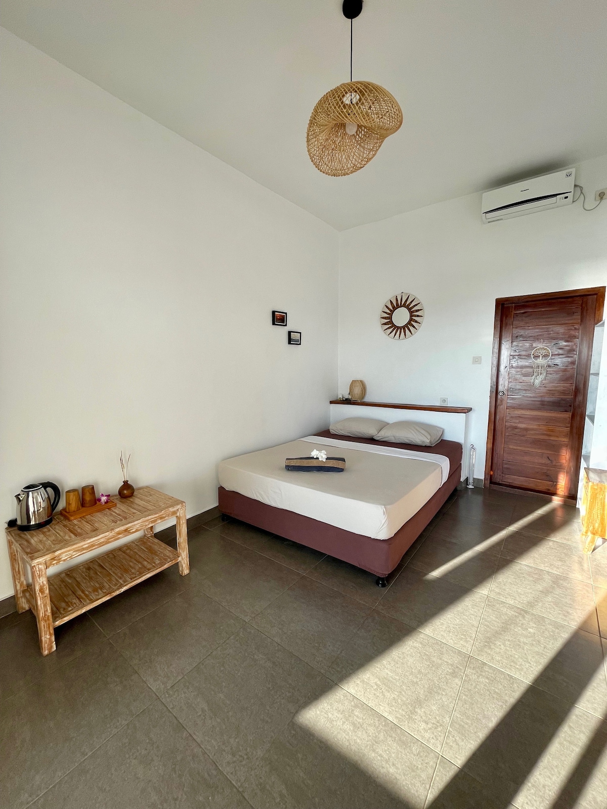 Tout comme dans votre propre chambre, détendez-vous sur le canapé confortable avec une table basse. Si vous rabattez le canapé inclinable et l'utilisez comme lit, jusqu'à 3 personnes peuvent y séjourner. Les surfeurs et les familles sont également les bienvenus. Il est également recommandé pour ceux qui surfent sur le net ou travaillent dans la chambre avec une connexion Wi-Fi équipée d'un modem dans chaque chambre. La plage de Lakey Peak est à 5 minutes à pied. C'est un emplacement très pratique avec de nombreux warungs et magasins accessibles à pied. Les locaux sont sûrs avec une sécurité 24h/24.