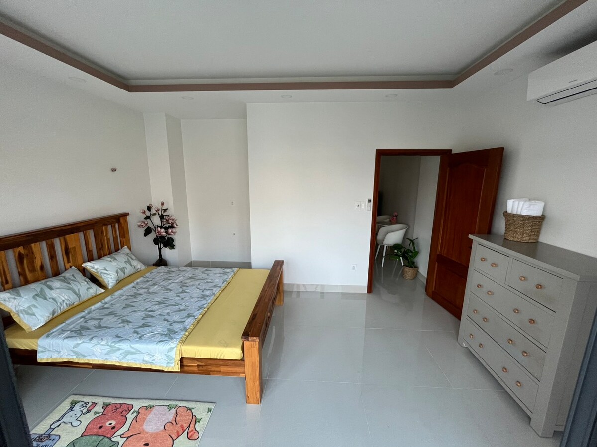 This Spacious Apartment features a private bathroom, a cozy bed, functional kitchen , big window for air but no view. Conveniently located just five minutes from District 1 and the trendy Thao Dien neighbourhood, you'll be near Landmark 81, shopping malls, cinemas, cafes, restaurants, a central park, and the river. Our newly built 1,000 m² building offers seven floors with a co-working space, an elevator and a spacious basement for parking.
