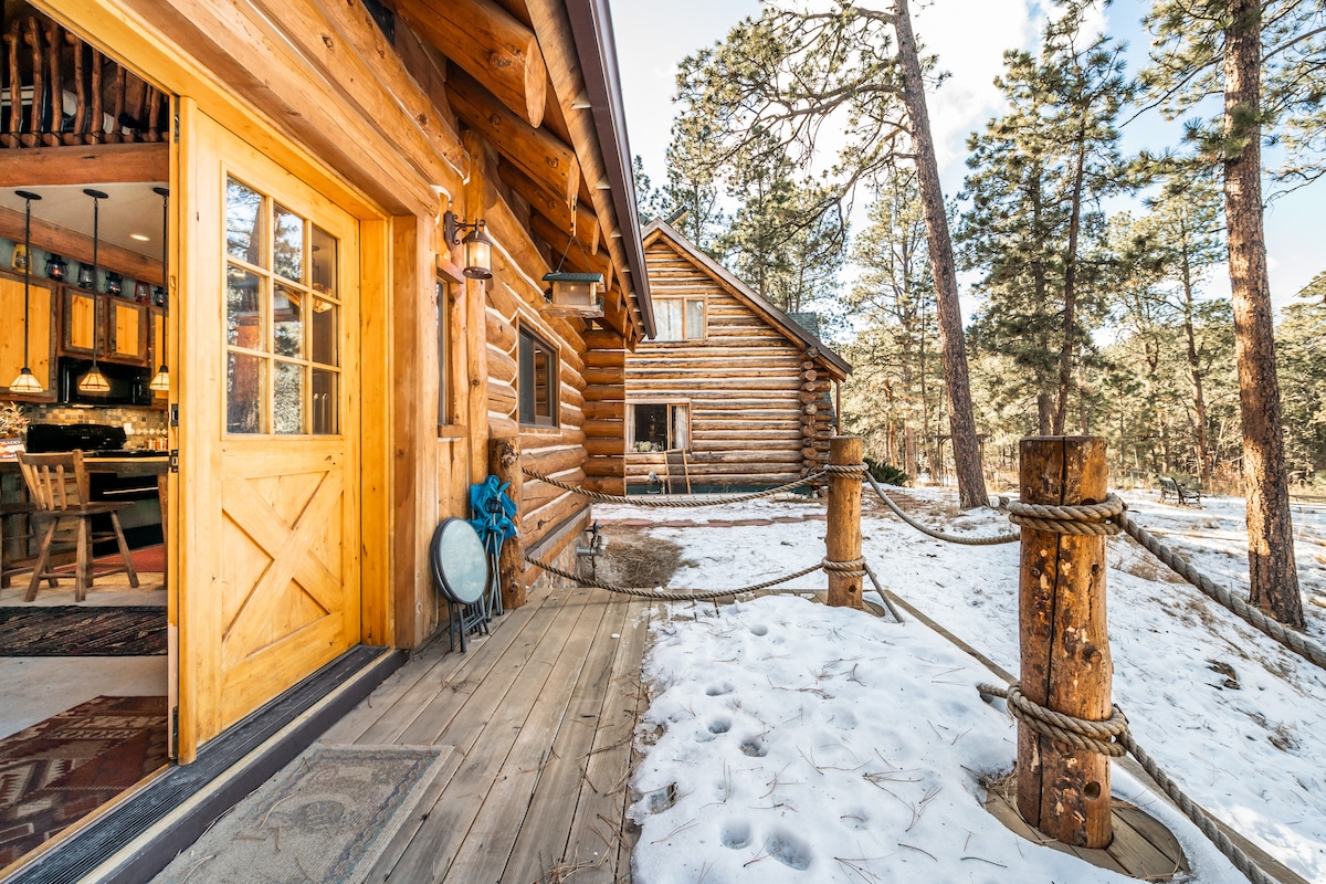Retirez-vous de la civilisation dans cette belle cabane en rondins dans la forêt. Promenez-vous parmi les pins ponderosa ou asseyez-vous au bord du lac sur nos 40 acres tentaculaires. À seulement 10 minutes au nord-est de Colorado Springs et à 20 minutes du cœur de l'Académie de l'Armée de l'Air. Cette chambre de 1 lit queen size, 1 salle de bain dispose également d'un loft de 5 lits pouvant accueillir 8 personnes (un futon queen size, deux lits doubles, deux lits simples superposés) et d'une cuisine complète.