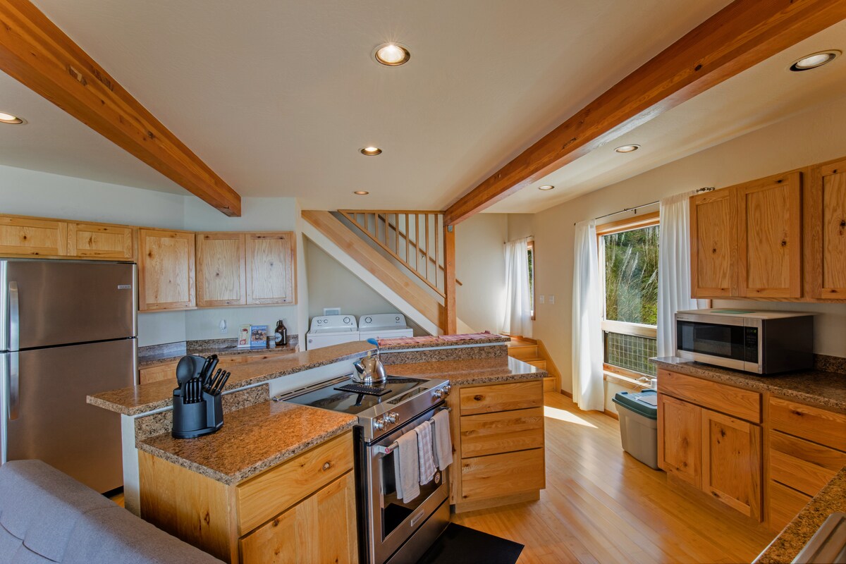 Le Lost Coast Cottage est une maison magnifiquement rénovée nichée dans la vallée de Mattole à l'extrémité nord de la Lost Coast. La maison est à quelques minutes des plages et de la rivière Mattole. Elle est entièrement en bois naturel, avec trois chambres, deux salles de bains, une cuisine et un garde-manger entièrement approvisionnés, des terrasses, des lits et des draps neufs, un barbecue au propane et une cour arrière. Nous voulons rendre votre séjour aussi confortable que possible. Notre propreté exceptionnelle, nos équipements, notre emplacement et notre hospitalité sont les raisons pour lesquelles les voyageurs reviennent.
