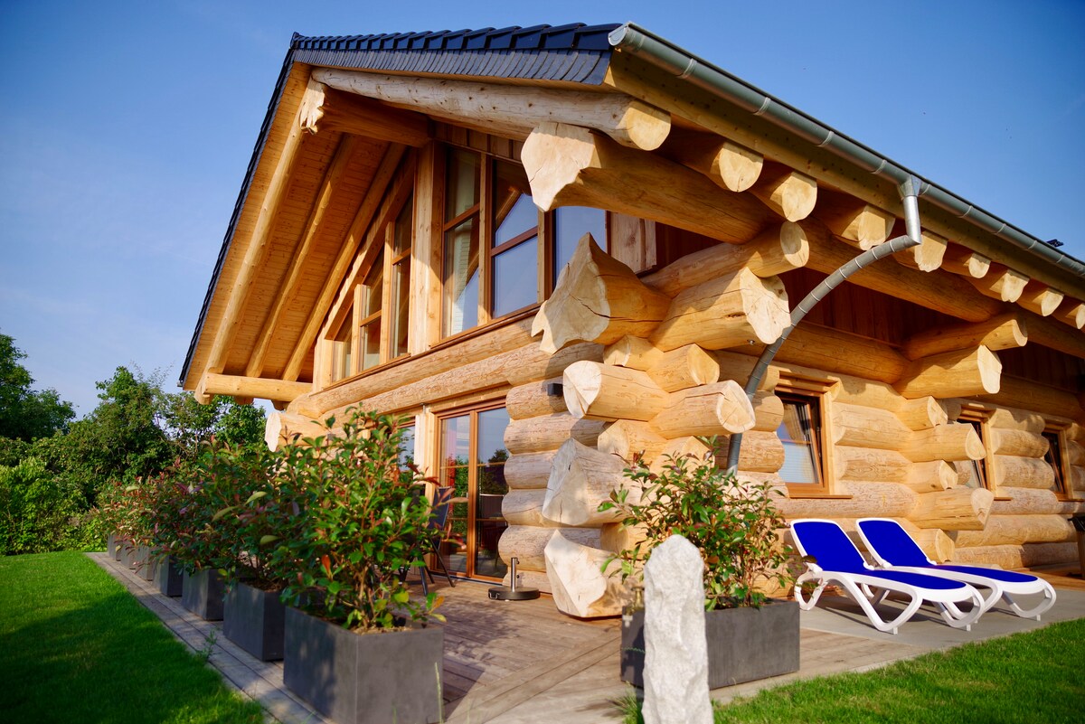 Cabane en rondins Eifelsteig avec cheminée jardin et foyer