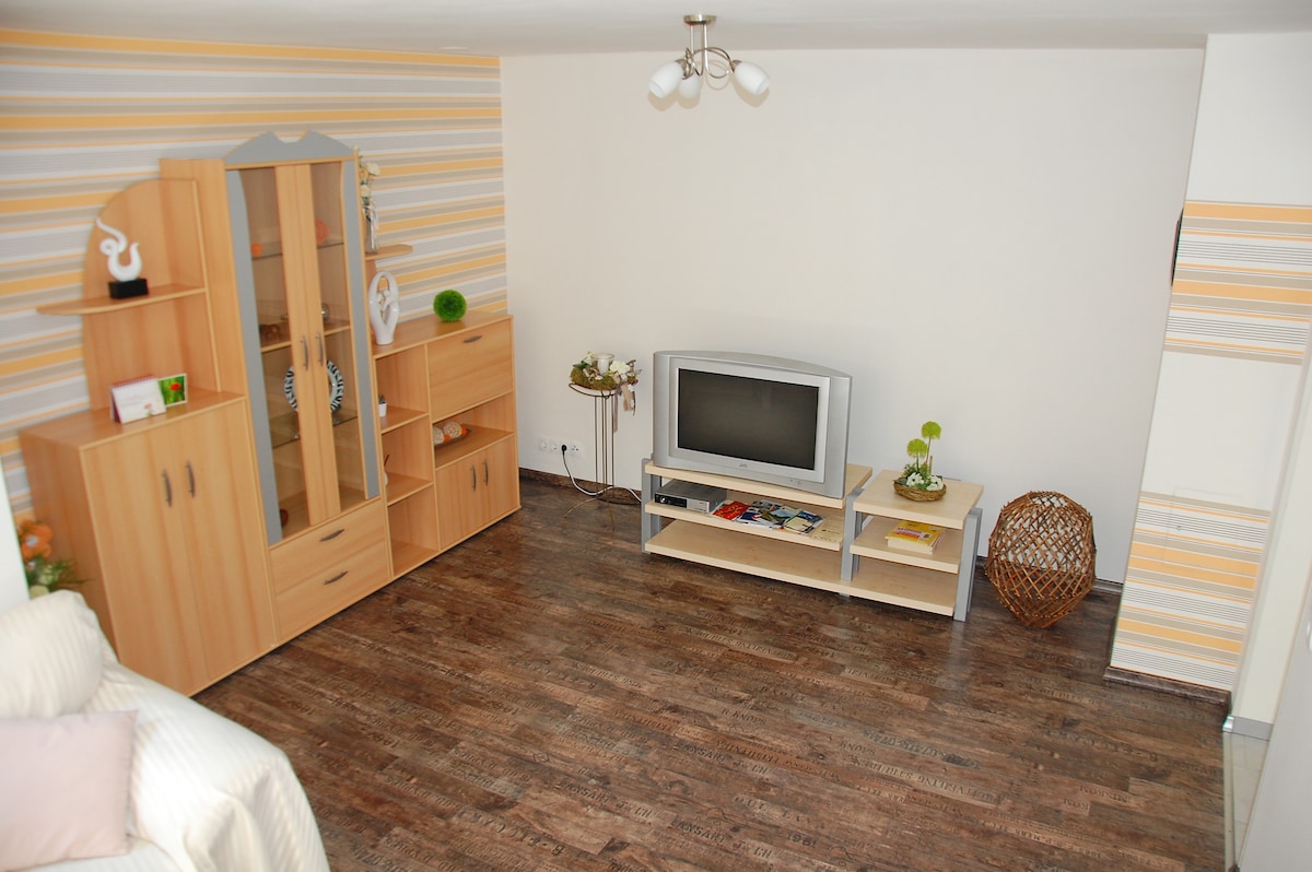 Appartement de vacances meublé avec amour – idéal pour les couples, les petites familles ou les personnes en quête de tranquillité. Le logement dispose d'une chambre à coucher et d'un canapé-lit confortable dans le salon. La cuisine est entièrement équipée. Un point culminant particulier est le balcon couvert avec une vue magnifique. Deux supermarchés et une boulangerie sont situés à proximité immédiate. Pour nos petits hôtes, nous mettons volontiers à disposition un lit bébé et une chaise haute sur demande.