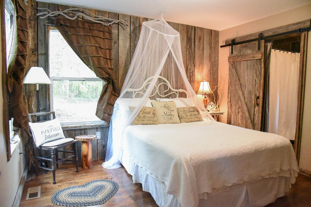 Ayez les bois rien que pour vous dans ce chalet de campagne situé dans la belle ville de Maryville, dans le Tennessee. Ces 8 acres offrent un accès facile à de nombreux sites pittoresques. À quelques minutes en voiture du parc national des Great Smoky Mountains et de la nouvelle extension de la Foothills Parkway. Situé à environ 15 minutes des célèbres fermes de BlackBerry. À l'intérieur du gîte, vous trouverez d'authentiques murs en bois de grange. Le porche est un endroit préféré pour se détendre dans la tranquillité de la beauté de la nature.