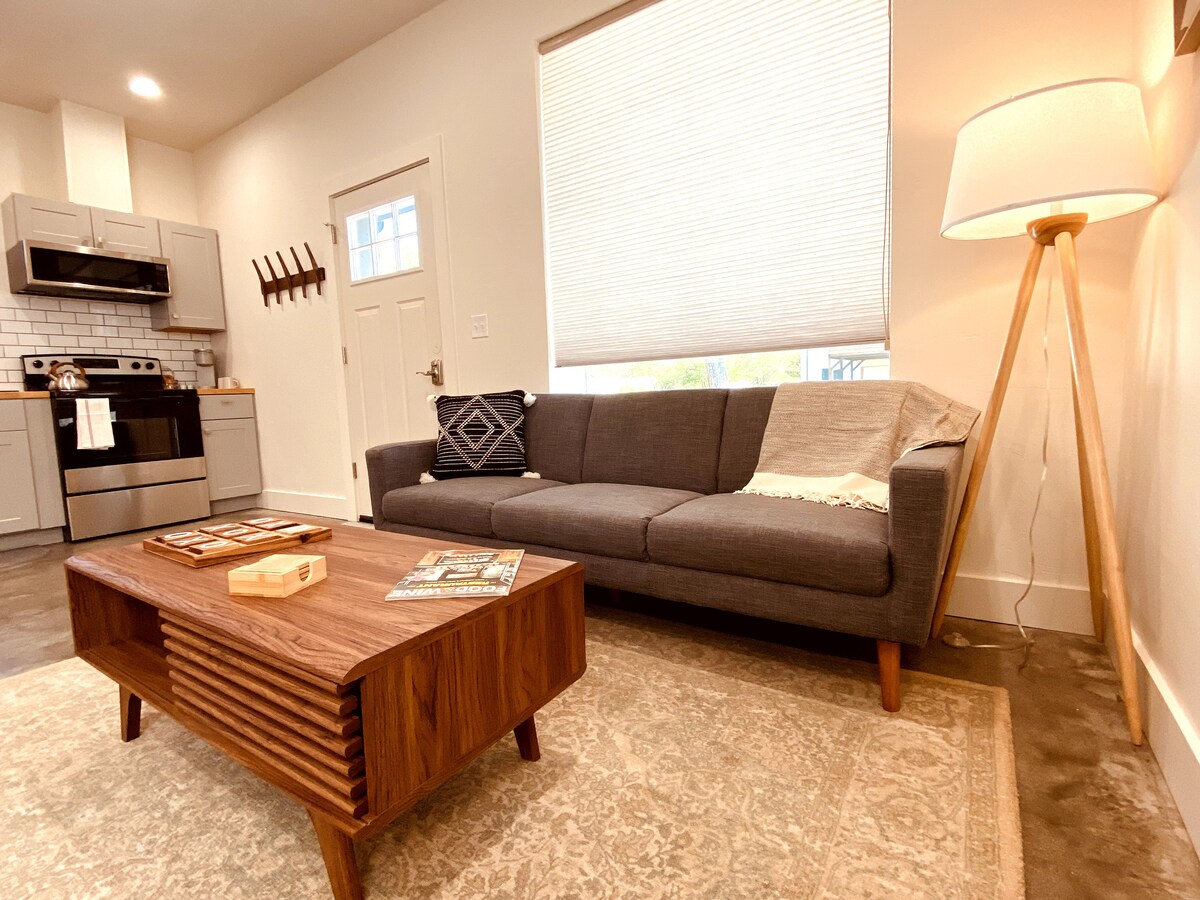 Le studio du premier étage dispose d'un lit King Size et d'un canapé-lit Queen Size. Ce logement dispose d'appareils électroménagers en acier inoxydable, de comptoirs en quartz, d'un micro-ondes, d'une cafetière Keurig, d'un fer à repasser, d'un lave-linge/sèche-linge et d'un parking sur place. Les appartements sont idéalement situés par rapport au centre-ville de La Grande, à l'Université de l'Oregon oriental et à l'hôpital Grande Ronde.