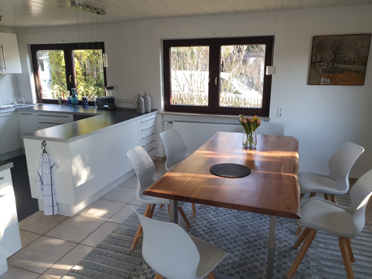 Maison en bois design moderne avec une vue magnifique sur le vignoble et la vallée de la Rems. L'appartement se trouve au rez-de-chaussée d'une maison familiale et dispose d'une entrée indépendante de l'extérieur. 15 minutes en voiture de Stuttgart Mitte et 20 minutes en S-Bahn. Le logement L'appartement dispose d'un équipement de haute qualité. Cuisine, salon et salle à manger ouverts. Une très grande terrasse extérieure invite à la détente. Tous les équipements de l'appartement sont disponibles