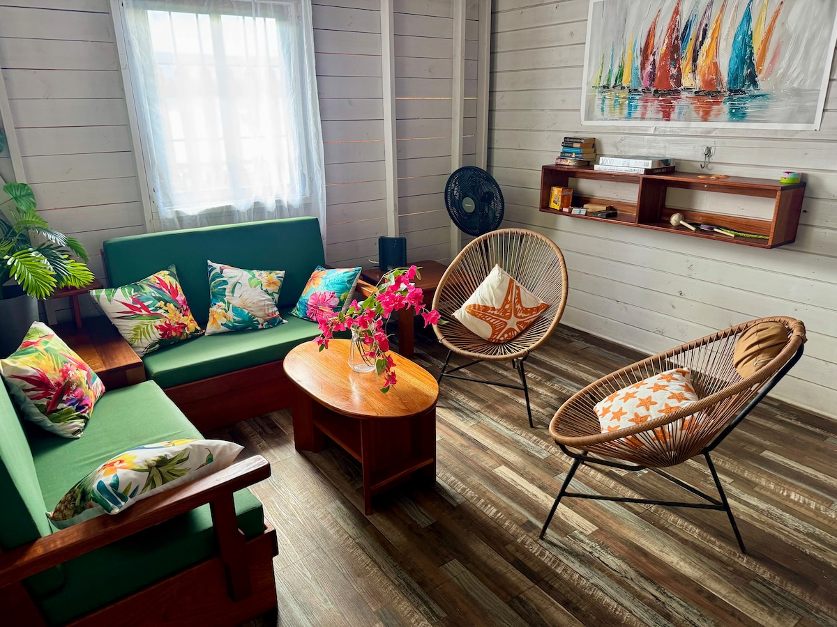 Belle maison de plage écologique avec des touches de luxe ! Détendez-vous sur votre spacieuse terrasse privée donnant sur le récif corallien. Faites de la plongée avec tuba directement sur le quai ou sautez dans l'eau chaude de votre cabane en bord de mer. Soyez hypnotisé par les couchers de soleil sur l'eau en face, la cocoteraie de chaque côté et la forêt tropicale luxuriante derrière vous. Endormez-vous au son tranquille des vagues qui se déchaînent en contrebas. Réveillez-vous avec de l'eau de coco de votre propre cocotière. Pas de climatisation et vous ne la manquerez pas. Explorez cette Venise caribéenne unique !