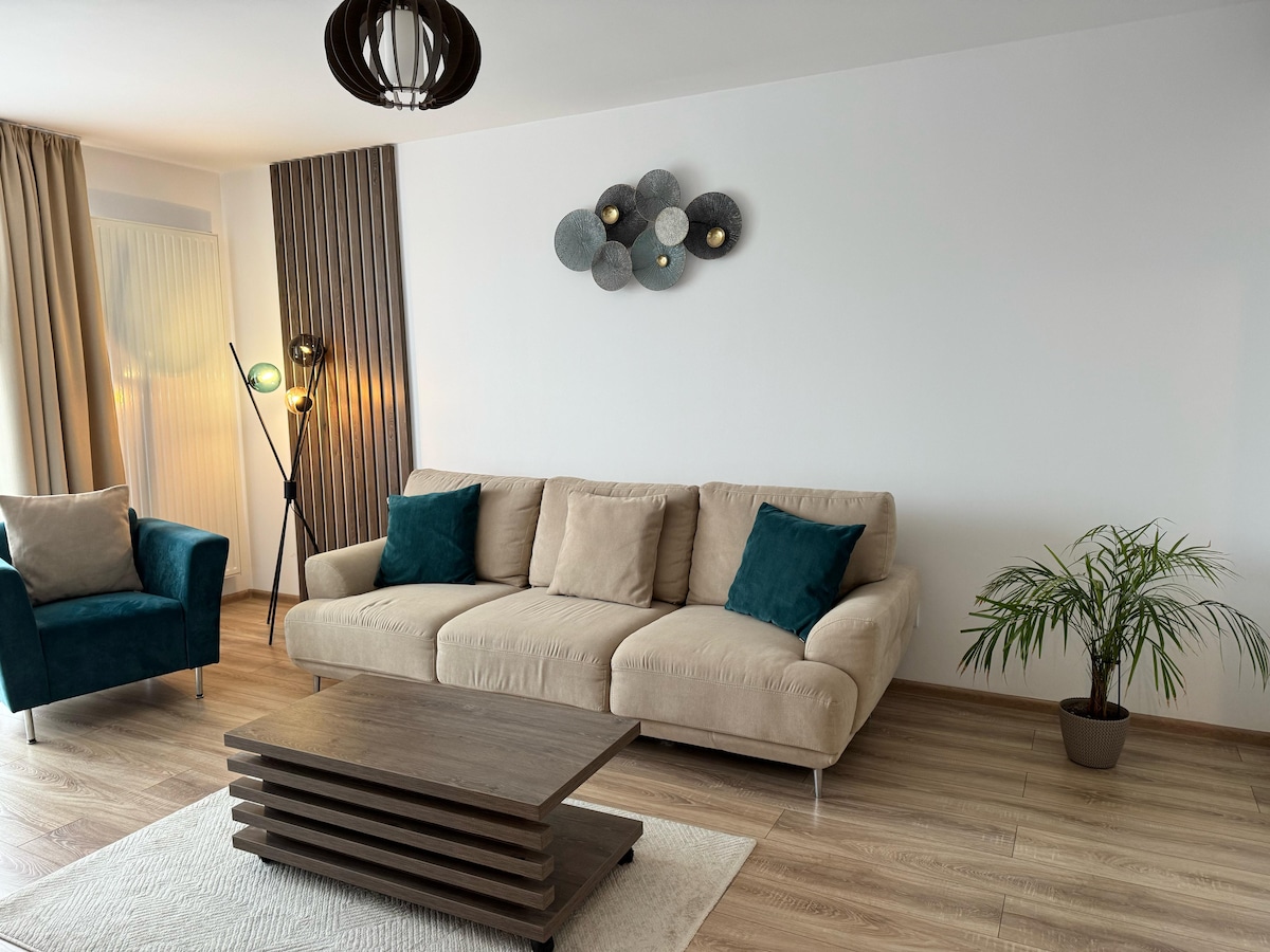 Nous vous accueillons dans notre nouvel appartement de charme situé dans la partie « la plus jeune » de Brasov. Entièrement meublé, une chambre avec un lit king size généreux et un siège de fenêtre confortable, une salle de bain de style rétro avec douche à l'italienne, un salon avec bar, cheminée, un canapé confortable et une cuisine entièrement équipée, en espace ouvert. L'appartement est à 5 minutes à pied du centre commercial Coresi et à 20 minutes en bus du centre de la vieille ville (4 km). La gare est à 15 minutes en bus (2 km).