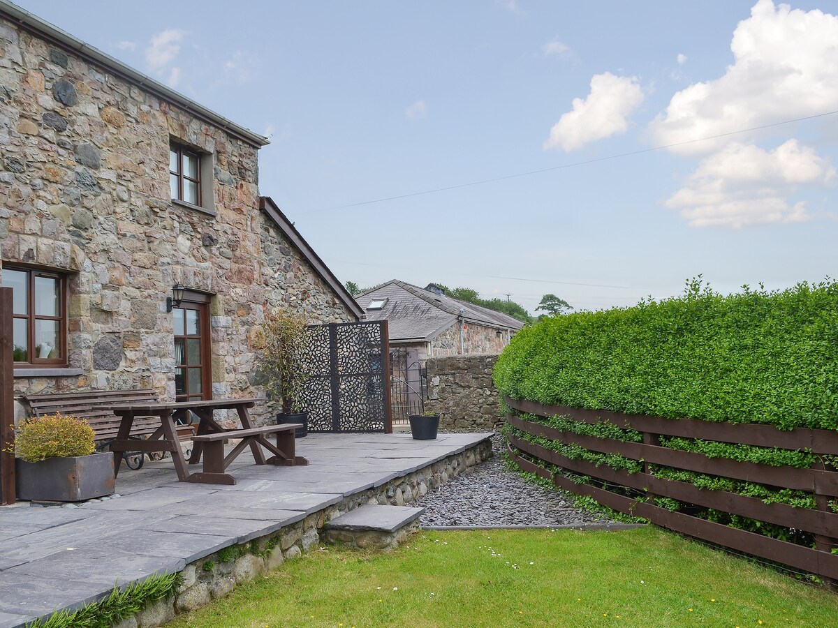 Cottage gallois traditionnel à 10 minutes en voiture du pont Menai, à seulement 15 minutes de Newborough et Beaumaris, ainsi que du magnifique sentier côtier d'Anglesey et de nombreuses plages magnifiques comme Rhosneigr, Rhoscolyn, Treaddur Bay et Benllech. Également idéal pour accéder aux montagnes de Snowdonia et aux attractions comme Zip World. The Cowshed- Beudy Hologwyn, est une grange de style boutique rénovée avec toutes les commodités modernes nichée au bout d'une piste agricole tranquille avec une vue imprenable sur la montagne.