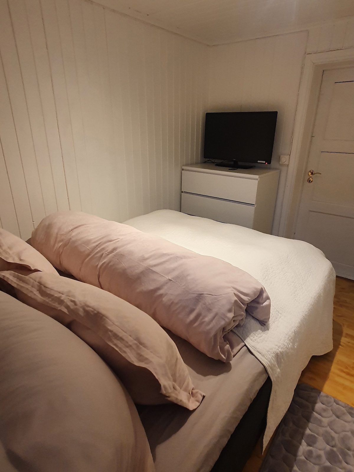 Stue, soverom og toalett, helt adskilt fra vertens del av huset. Det er ikke dusj i utleieenheten, men det kan avtales å låne vertens dusj. Huset ligger sentralt og er perfekt for deg som trenger en overnatting på gjennomreise; da det er kort vei til togstasjonen, ferge, hurtigrute, buss til flyplass og butikker i sentrum. Perfekt for deltidsstudenter da det er 1 minutt til buss som går hvert 10. minutt til Nord universitet. Jeg bor selv i egen del av leiligheten, men den er helt separat