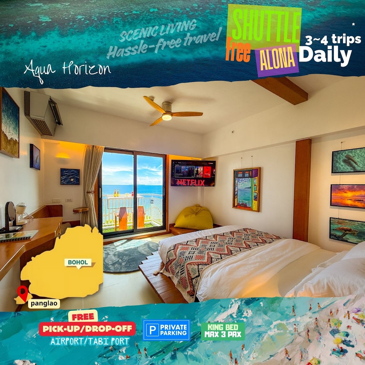 Aqua Horizon Panglao 18 SeaView Art Condo KingBed