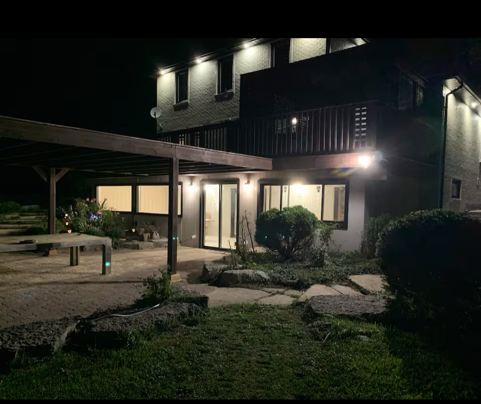 Pas de réservation par un tiers ! Pas de fêtes ! Pas de visiteurs ! Des tonnes de rénovations et de fonctionnalités modernes haut de gamme ! Plafond haut au-dessus du sous-sol. Espace de vie ouvert comprenant une cheminée, une télévision intelligente, une cuisine équipée, une buanderie et une grande armoire. 1 place de stationnement. Profitez des sentiers pittoresques de Woodbridge. À 10 min des magasins Vaughan Mills et de Canada's Wonderland. À 15 min de l'aéroport Pearson. Surveillance extérieure 24h/24. Une caméra surplombant l'allée. Une caméra au-dessus de la porte d'entrée et une à l'extérieur de la porte de tempête de l'unité Airbnb.