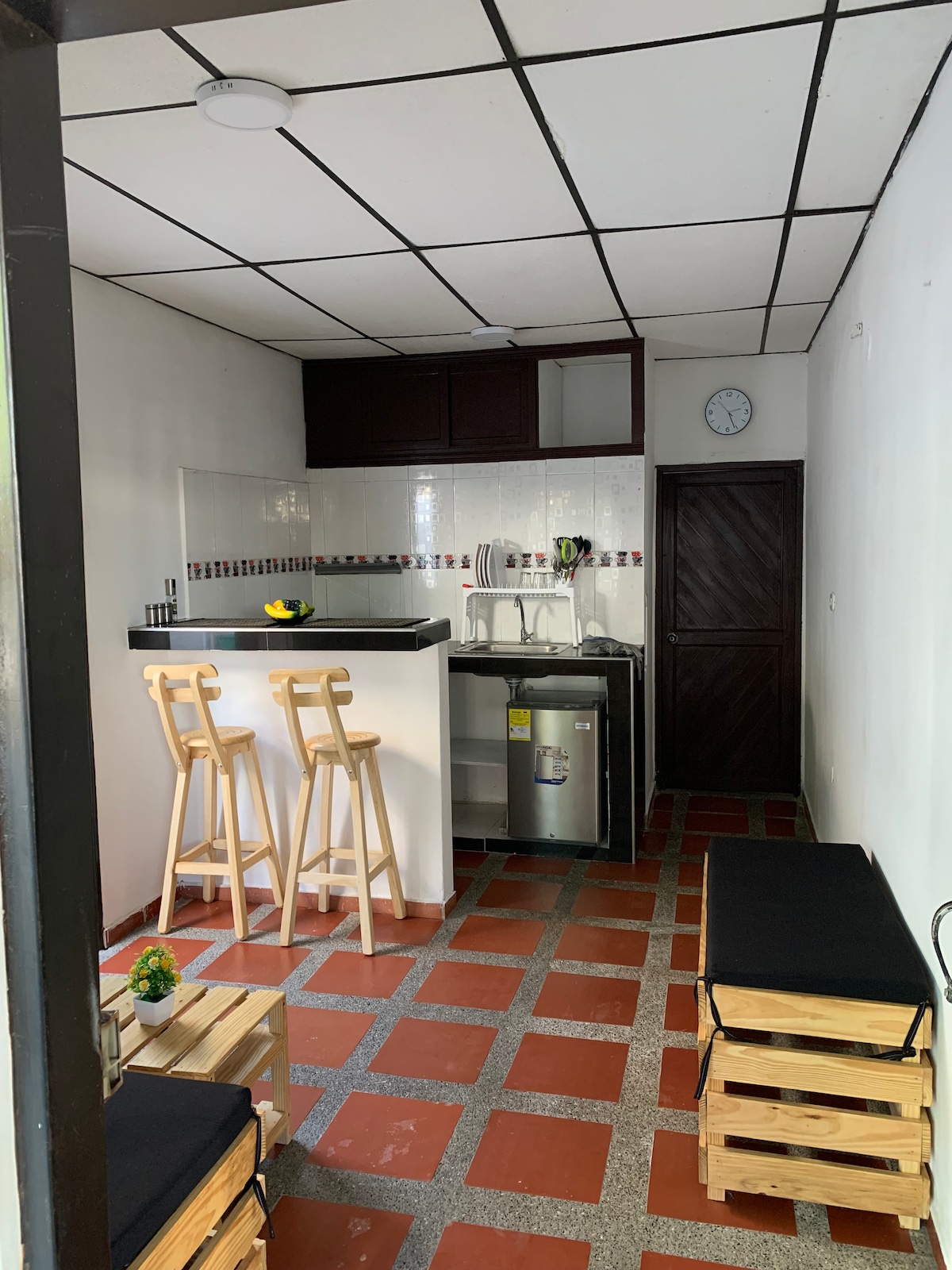 Appartement avec un bon emplacement, 1 chambre avec lit double et lit simple, il dispose d'une salle de bains, d'une terrasse (adaptée aux motos), d'une cuisine avec (réfrigérateur, cuisinière, vaisselle, couverts, casseroles, savon, sel, etc.) et d'un espace buanderie. Il dispose de la climatisation, d'un ventilateur, de Netflix et du Wifi. Situé dans le quartier résidentiel et central de Santa Marta, à proximité des supermarchés des chaînes D1, ARA et Olímpica. à deux rues, vous pouvez prendre n'importe quel bus pour vous rendre au centre historique, au PN Tayrona et au Rodadero.