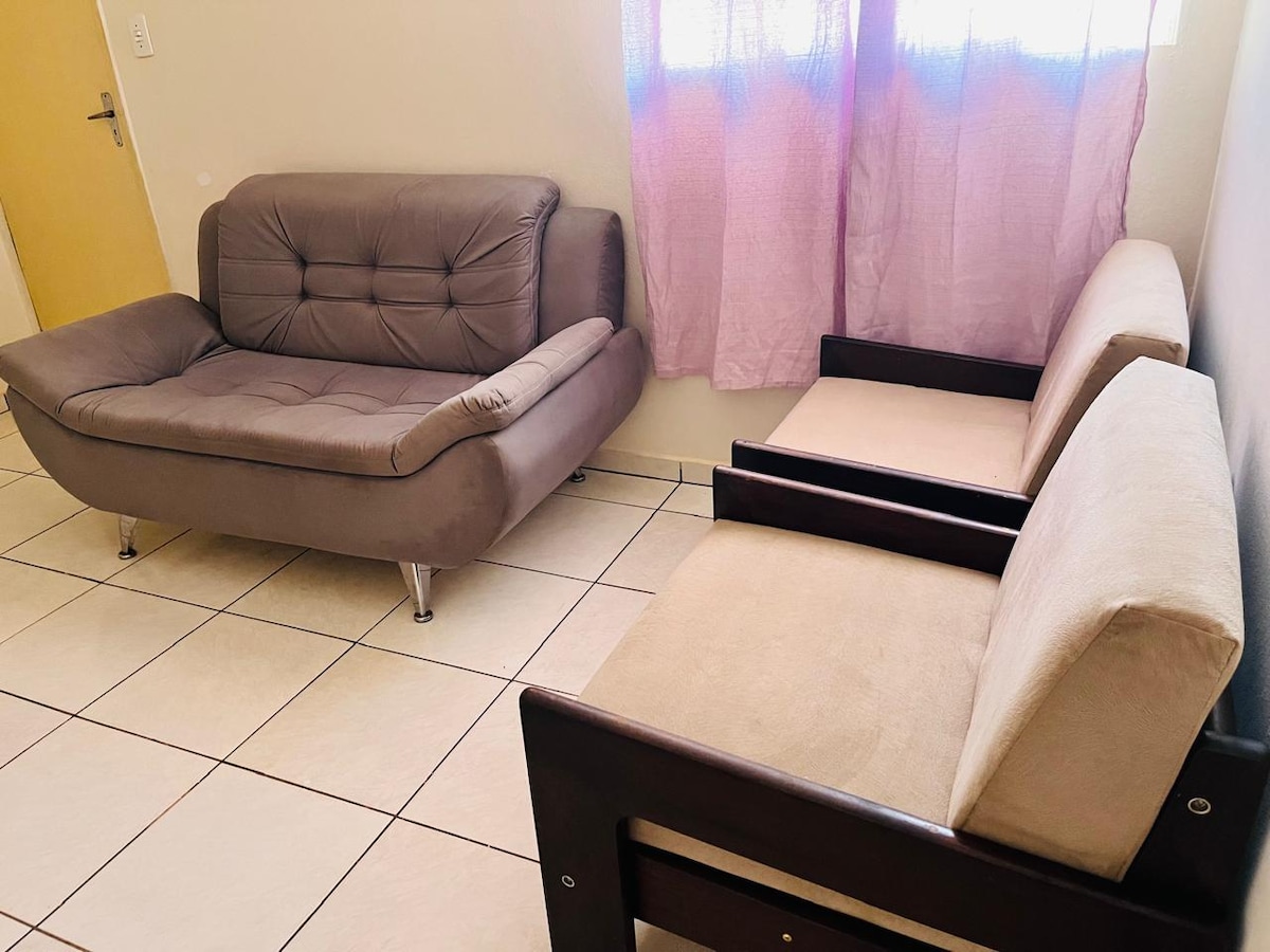 É um lugar tranquilo e bem-localizado, com padaria à 20 metros. Apartamento com 1 quarto cama queen, e sofá cama na sala. Oferecemos roupa de cama e banho. Estamos localizado à 3 quadras do centro da cidade. Estacionamento para 1 carro incluso.