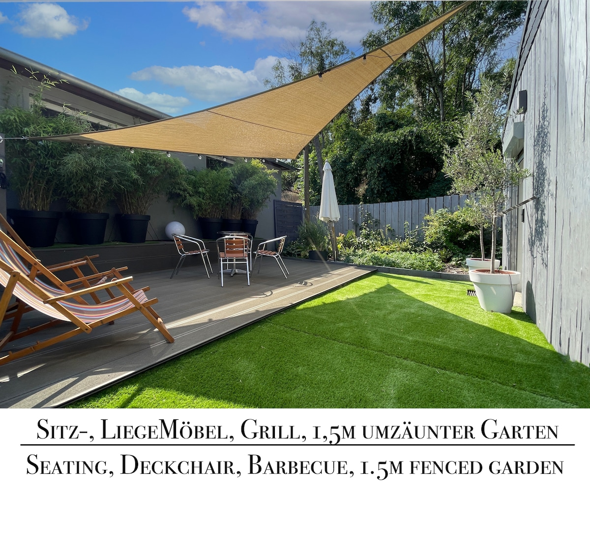Studio de 30 m² avec terrasse privée, possibilité de faire un barbecue et vue sur le grand jardin ombragé. Très calme grâce à sa situation dans l'annexe de la maison principale (rez-de-chaussée). Un lit bébé et une chaise haute sont disponibles. L'appartement de vacances se trouve à proximité du centre-ville et de la gare (500 m chacun). Le parc municipal avec aire de jeux et la piscine couverte sont à environ 200 mètres. Un parking gratuit se trouve à environ 150 m, les vélos peuvent être garés en toute sécurité dans la cour.