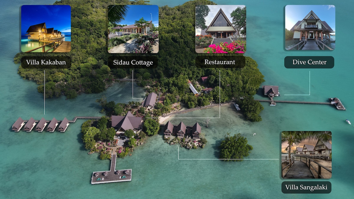 Une maison d'eau très unique située au milieu de la mer cristalline. Vue paisible et imprenable sur la mer, en particulier au lever et au coucher du soleil (sous réserve de la météo). Les forfaits comprennent le petit déjeuner, le déjeuner, le thé et le dîner. En outre, nous incluons également une séance de plongée avec tuba où vous pourrez découvrir des coraux très frais, divers types de poissons et des tortues de mer si vous avez la chance. Ensuite, nous visiterons le village local à proximité pour comprendre leur culture et leur séance de karaoké pendant la nuit après le dîner.