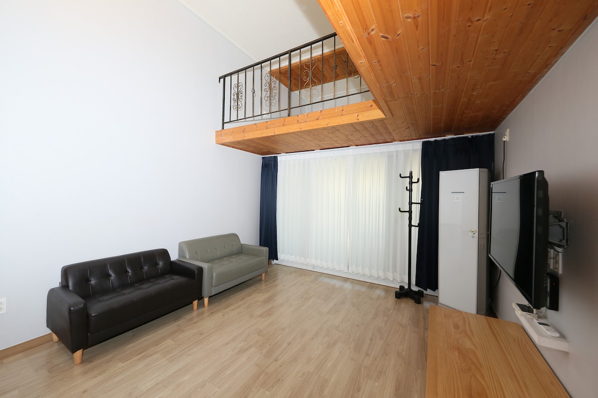 Chambre 303, appartement soigné situé près de la plage de Daecheon, avec mezzanine, 3 lits et barbecue