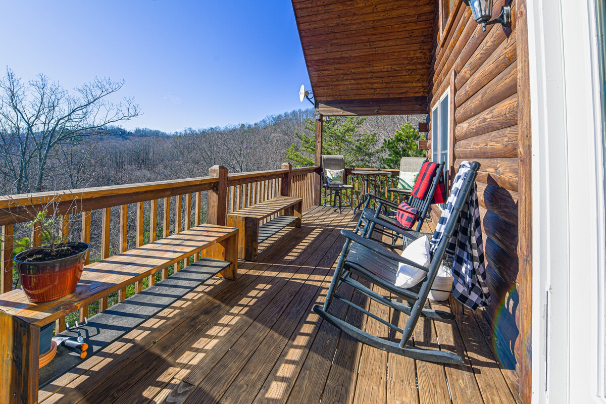 Trouvez du réconfort au Duke's Hideaway, une retraite confortable au sommet d'une montagne. Notre magnifique maison en rondins est joliment aménagée avec un mobilier rustique chic et comprend tout ce dont vous avez besoin pour de merveilleuses vacances. Cabane de 2 lits/2 salles de bain + grand espace en mezzanine donnant sur les montagnes du Sud et orienté vers l'est. Vue imprenable sur la montagne et la vallée depuis l'immense terrasse et la cour. Vue panoramique sur les montagnes depuis l'espace en mezzanine, le salon et la salle à manger.