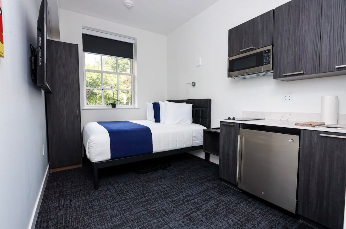 Profitez d'un séjour unique, confortable et luxueux à Boston au 28 Fenway de Maverick Suites. Situé au cœur du quartier de Fenway, ce studio moderne offre luxe et style avec une touche de rébellion. Cette chambre est située dans l'ancienne grande pièce d'un manoir centenaire. Profitez de la commodité d'être à proximité des meilleurs restaurants, musées et attractions de la ville. Avec un mobilier confortable, une décoration élégante et un esprit d'exploration, le Maverick Suites' 28 Fenway est le p