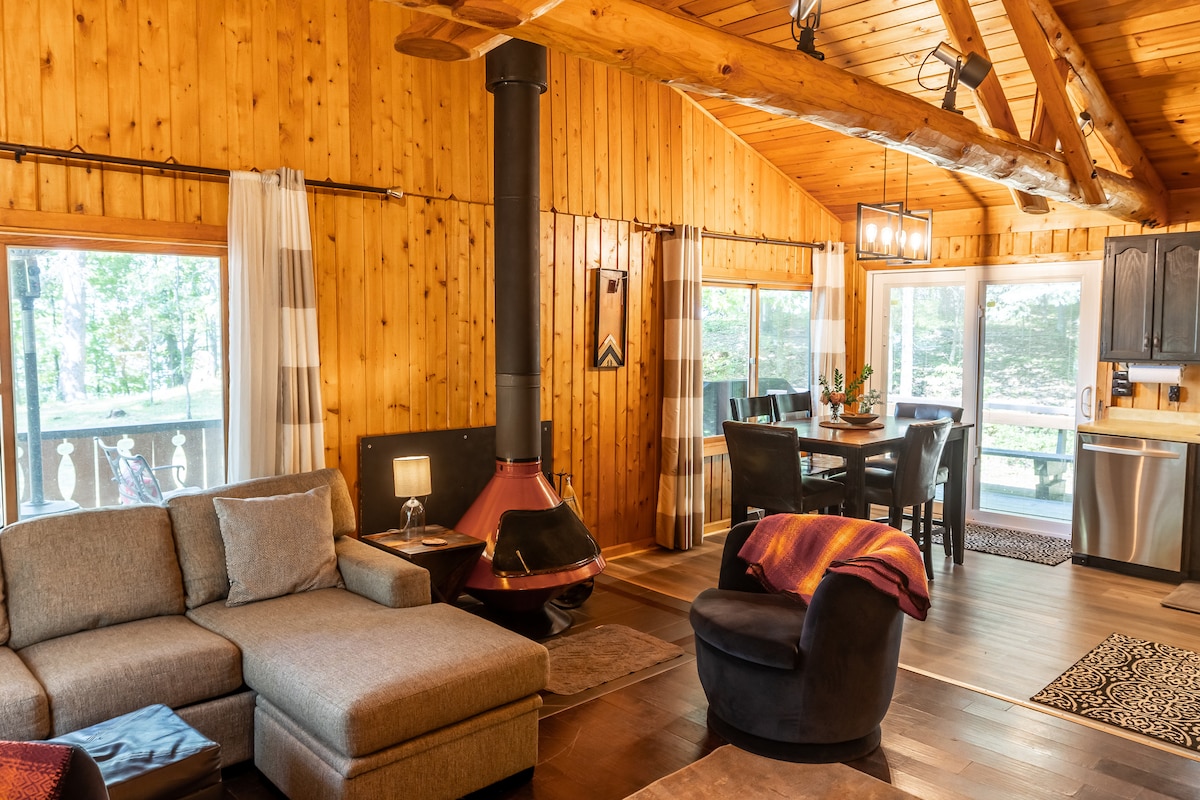 Bienvenue dans votre escapade de rêve sur les rives du lac Bass ! Cette cabane en forme de A rénovée est la retraite parfaite pour les couples et les familles, pouvant accueillir confortablement jusqu'à 7 personnes. Dès votre arrivée, vous serez entouré de beauté naturelle, de confort moderne et d'expériences inoubliables. • Détendez-vous dans le jacuzzi sous les étoiles • Détendez-vous dans le sauna en forme de tonneau avec vue sur le lac • Faites griller des s'mores au coin du feu avec des chaises suspendues • Regardez le match dans la pergola avec bar et télévision • Explorez le lac en kayak