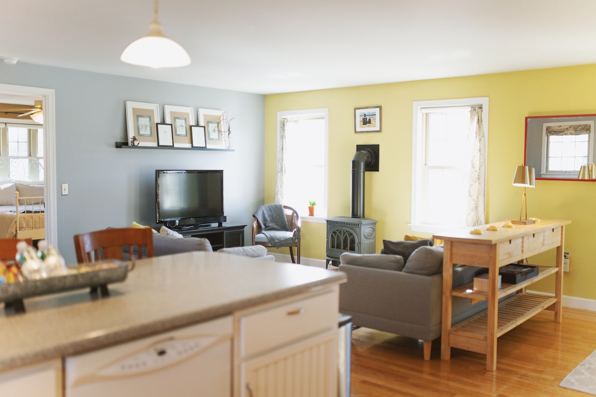 Un bel appartement au deuxième étage rénové à quelques pas du centre-ville de Concord. L'appartement est attaché à une maison historique de la Nouvelle-Angleterre des années 1800 et dispose d'une salle de bain entièrement rénovée (à partir du 01/12/24 !), d'une cuisine complète, d'une chambre, d'un salon/salle à manger avec un matelas escamotable avec surmatelas, ainsi que de deux placards. En outre, nous fournissons la climatisation, Internet haut débit et Netflix aux voyageurs. Le logement est nettoyé professionnellement ET LES draps sont lavés professionnellement !
