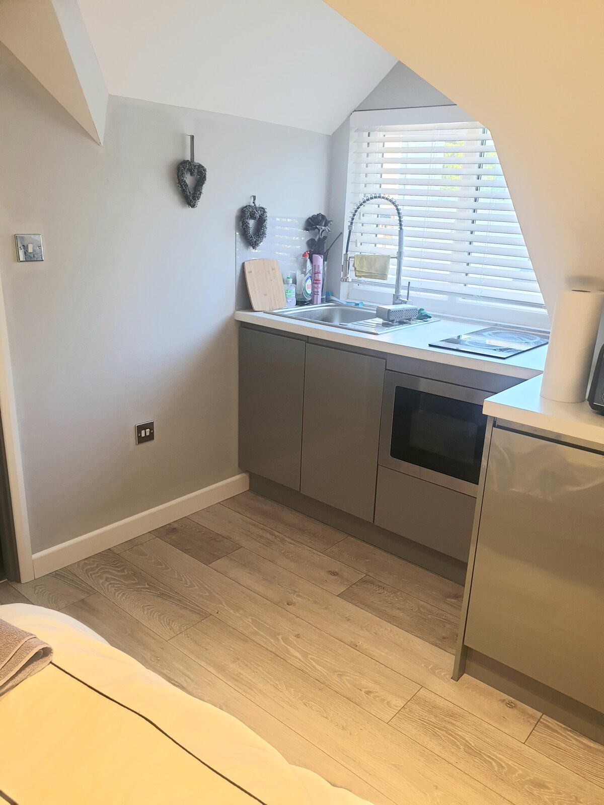 STUDIO FLAT 25m2-PERFECT FOR CONTRACTORS/BUSINESS TRAVELERS Our studio flat offers a cosy living space, fully furnished with modern décor and all essential amenities in a single open space, making it ideal for short-term stay. You will enjoy the convenience of a combined living and sleeping area complemented by separate kitchen and bathroom.