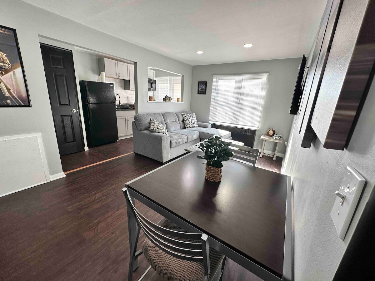 La propriété est un duplex de deux unités dans le quartier historique de Cool Spring. Cette annonce concerne un appartement d'une chambre et d'une salle de bains entièrement équipé avec une cuisine et une buanderie privée au premier étage. Il y a une télévision connectée dans la chambre et le salon avec accès au streaming en direct pour inclure Netflix, Hulu, Disney+, et plus encore ! Entrez simplement votre nom d'utilisateur et votre mot de passe pour y accéder. Venez et faites comme chez vous !