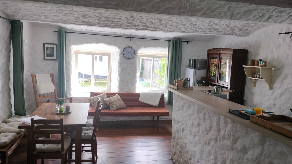 Évadez-vous dans une cabane historique rénovée avec goût. Réchauffez-vous dans le sauna au feu de bois, puis détendez-vous dans un étang naturel. Profitez du son de la cascade, de la forêt et de la nature tout autour. Détendez-vous près de la fenêtre avec un feu crépitant. Le confort de luxe comprend un système audio Bowers & Wilkins, une cuisine entièrement équipée recyclée par de vieilles portes en bois, et une salle de bain avec plancher chauffant et une douche à effet pluie. Parfait pour un séjour romantique ou un télétravail avec un moniteur Dell gigogne. À seulement 30 minutes de Prague.