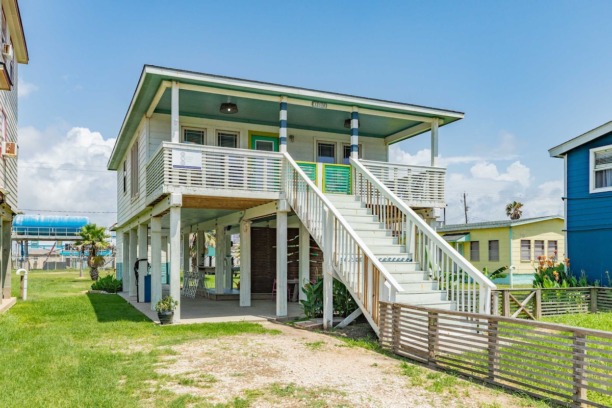 Bienvenue au Surfsonian, notre belle maison de plage à quelques pas de l'eau. Le cadre paisible et relaxant offre une vue et des sons sur l'océan depuis la deuxième rangée. Récemment rénovée avec beaucoup de caractère. La terrasse est prête pour que vous puissiez vous asseoir et regarder les vagues ou marcher 30 secondes pour atteindre l'eau. Vous apprécierez l'espace à l'intérieur comme à l'extérieur. Le village super cool de Surfside est idéalement situé à 1 heure du centre-ville de Houston et à 15 minutes du lac Jackson.