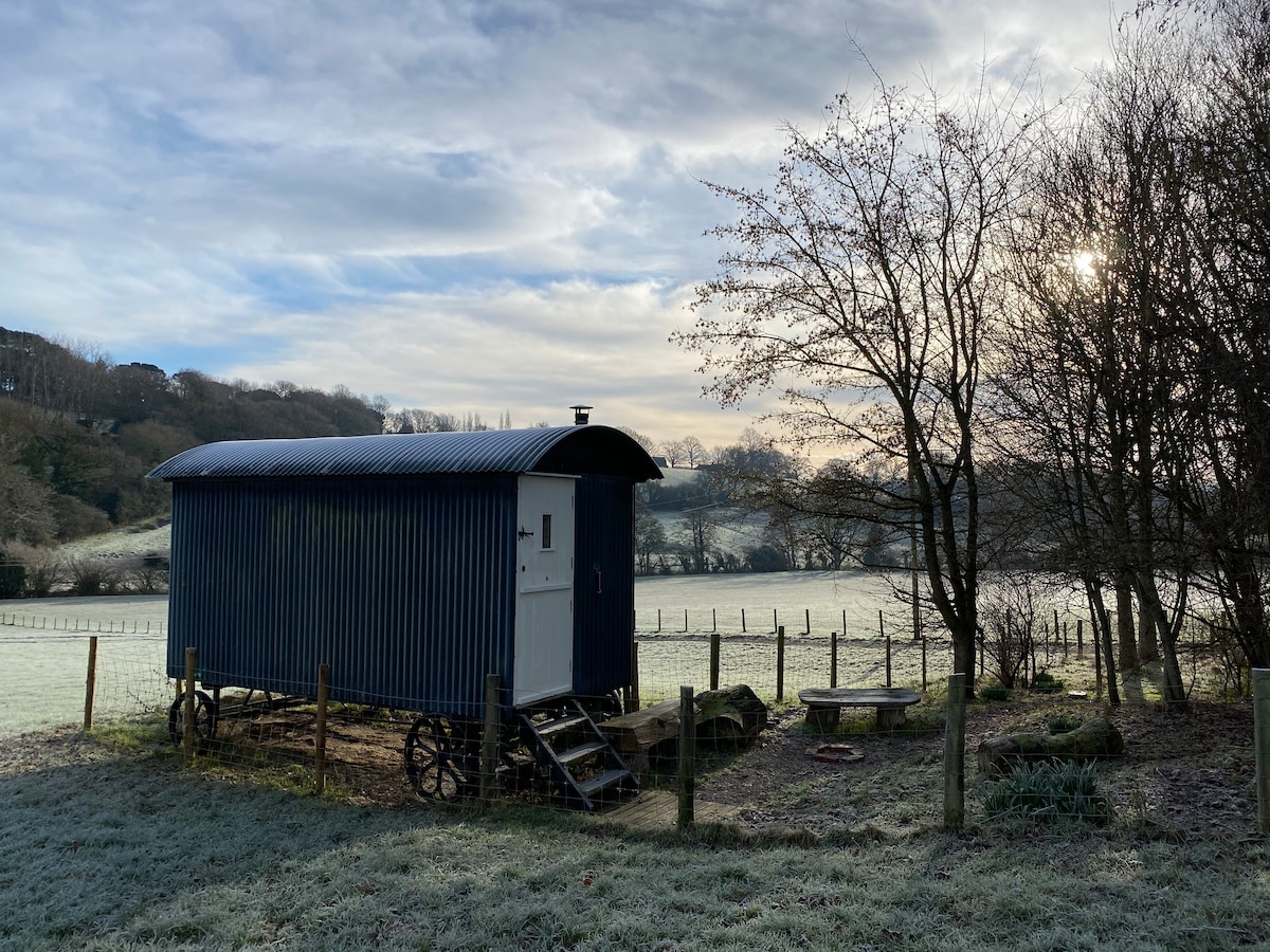 Cabane de berger de luxe romantique surplombant la campagne avec un verger et un foyer à quelques pas pour les voyageurs. Construite avec les meilleurs matériaux traditionnels disponibles et parfaite pour une pause détente. Entièrement équipée avec chauffage central, Wi-Fi, TV et salle de bains privative. Toilettes et douche entièrement raccordées. Il y a beaucoup de promenades à la campagne directement depuis la cabane. Plusieurs bons pubs sont à moins de 5 à 15 minutes en voiture, les plages sont à environ 20 minutes en voiture et de nombreux sites intéressants à proximité, y compris NT et patrimoine anglais.