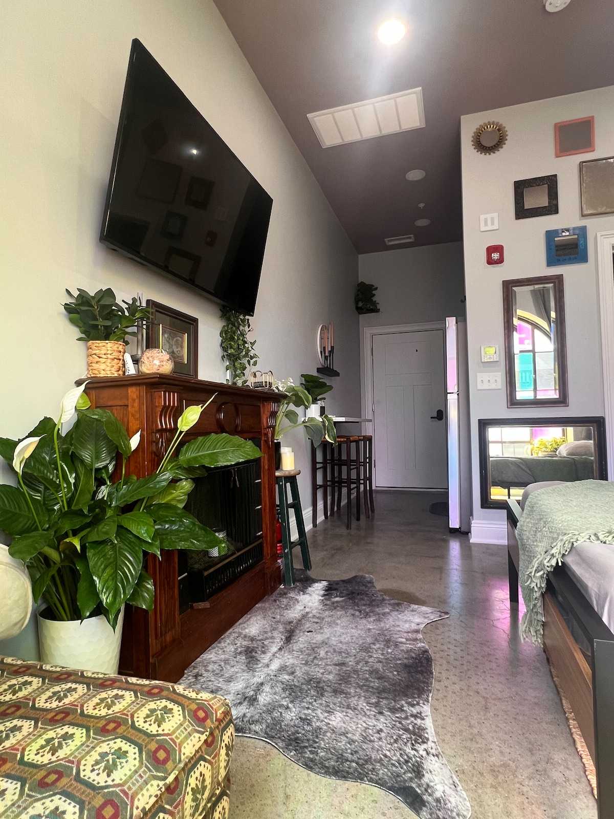 Veuillez noter l'emplacement et la région avant de réserver ! ! ! (NE RÉSERVEZ PAS si vous ne savez pas que c'est bruyant et occupé) Idéalement situé au centre-ville de Bridgeport. N'hésitez pas à allumer un feu🔥. Des fenêtres teintées à la main uniques offrent à l'espace une sensation d'ouverture bien qu'il s'agisse d'un petit espace. Le lit queen size, la cheminée et l'esthétique distinguent cet appartement de toute location que vous pouvez trouver. * frais pour les animaux de compagnie. N'hésitez pas à me contacter à l'avance.