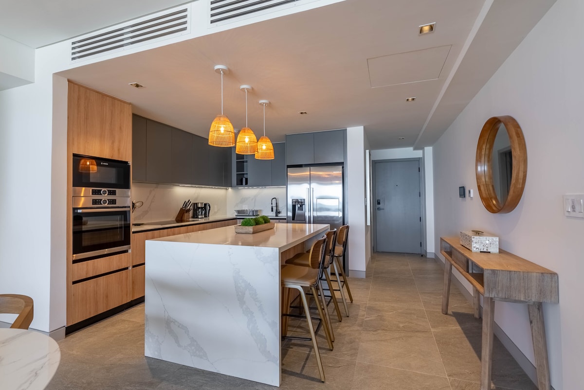 Bienvenue à Anidele Blue ! Détendez-vous dans cet espace calme, élégant et accueillant, situé à l'extrémité nord des appartements en résidence Allure récemment terminés. Il y a une vue à couper le souffle, que vous soyez à l'intérieur du salon, de la salle à manger et de la cuisine ouverts inondés de lumière, l'une des trois chambres avec salle de bains privative ou sur le patio privé ! Il y a également une vue imprenable sur la mer panoramique lorsque vous accédez à la terrasse sur le toit, avec piscine plongeante, foyer et chaises longues. De beaux couchers de soleil vous attendent ! Bientôt de la mer !