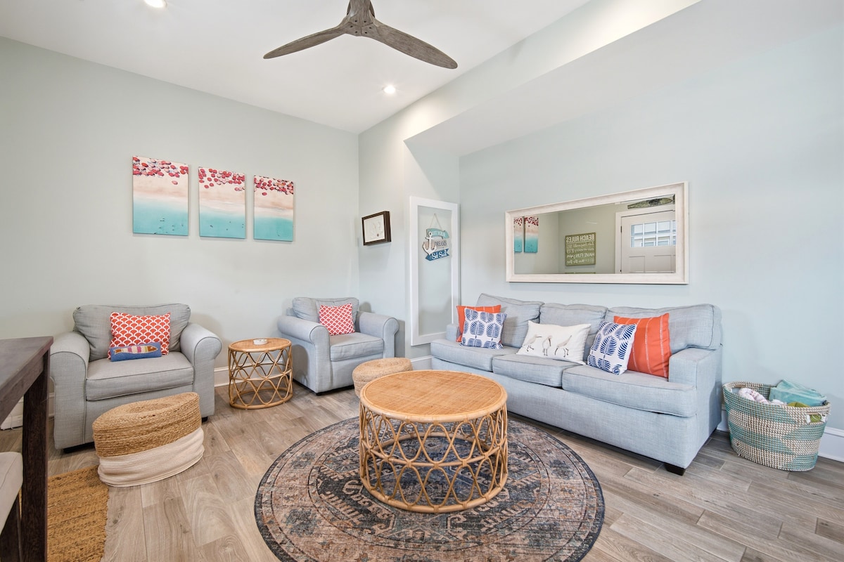 Professionally designed by the acclaimed JAB Design Group, Yacht Rock Escape is a 2- bedroom, 2-bath coastal retreat that blends refined design with effortless comfort & is perfectly suited for cozy, year round stays. Inspired by the relaxed sophistication of cruising the coast on a luxury yacht, the space feels calm, stylish, & inviting with beautiful views in every season. Just 4 houses from the sand, beach access remains easy, while cooler months invite you to slow down and savor the setting.