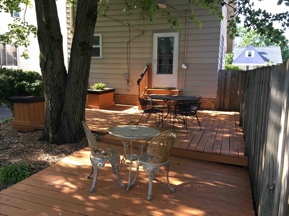 2e étage indépendant dans une beauté du milieu du siècle de 1868, nichée derrière des pins de 100 pieds en plein cœur de Berea historique. Profitez d'un séjour paisible, avec vue sur un paysage boisé, à distance de marche de Baldwin Wallace et du lac Coe. À seulement 10 minutes de l'aéroport et à 20 minutes du centre-ville de Cleveland. C'est l'endroit idéal pour visiter Baldwin Wallace ou découvrir l'histoire de la Case Western Reserve et du vieil Ohio. Vous trouverez une visite vidéo sur YouTube si vous recherchez 1868 Fowles.