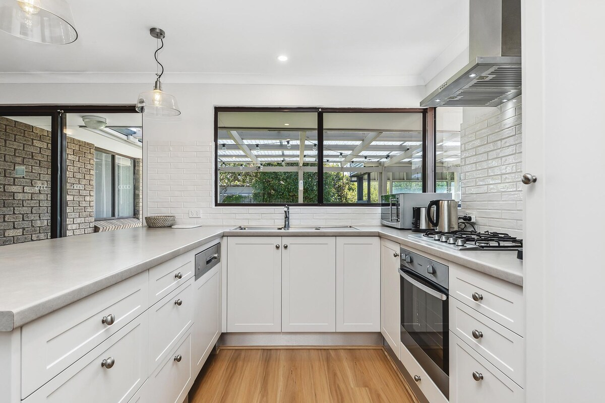 Broadwater Nature reserve, 10 minutes to walk to the Beach and Dolphin boat ramp,10 minutes to Busselton CBD and Jetty by car,and 20 minutes to the Wine Region and popular surf coastline. The house is a comfortable family home with 2 bedrooms available with king & queen beds, an extra fold out bed if needed,fans in each room, clothes storage and your linen and towels provided. One bathroom with seperate bath and shower area. Fully self contained kitchen, an Alfresco area lawned back yard and a