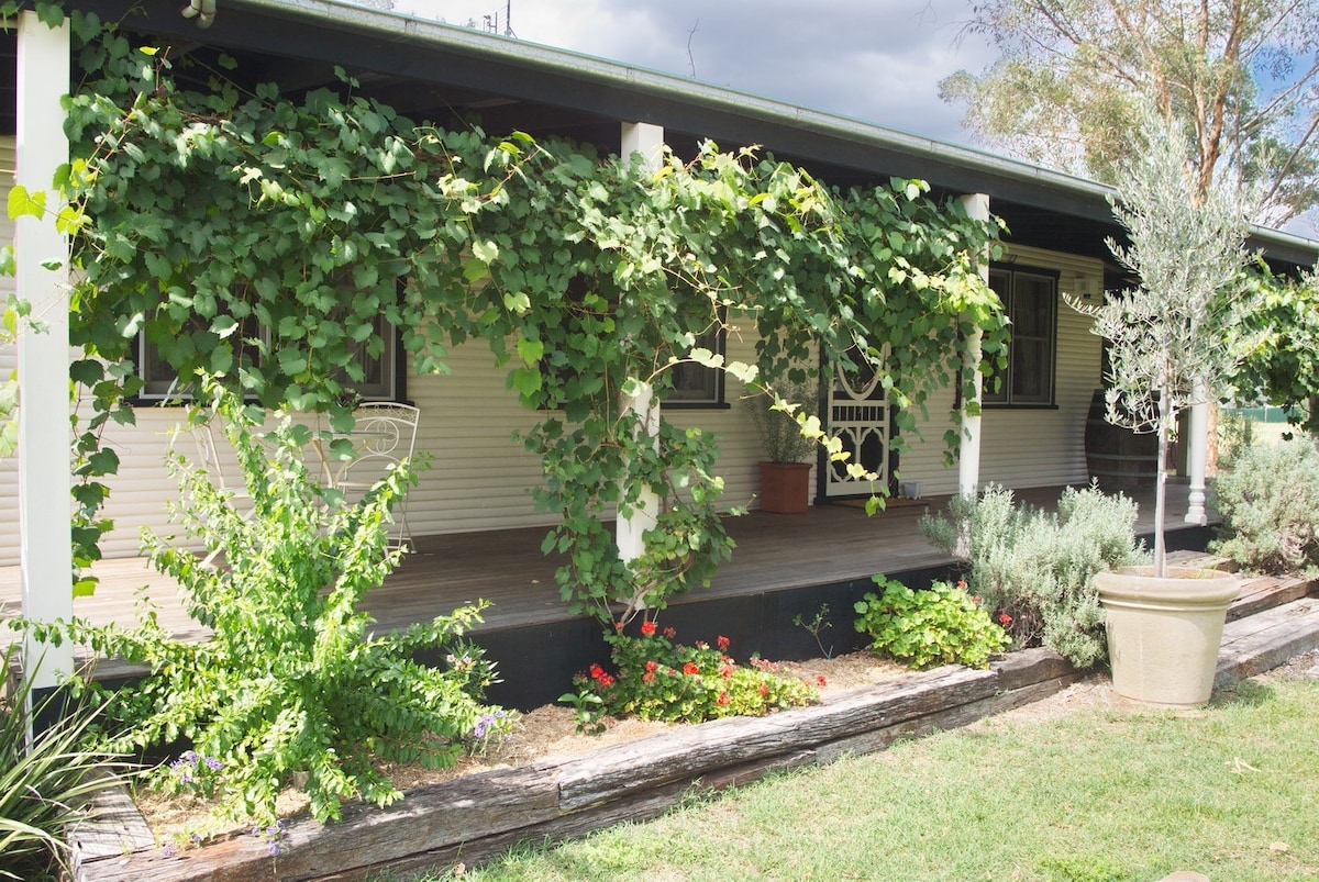 Profitez de la beauté naturelle et de l'expérience rurale tranquille de notre ferme viticole de 24 acres. Des horizons lointains, des étoiles incroyables, un espace de jeu abondant. Avec des espaces de vie ouverts, une cuisine entièrement équipée et un feu de bois, la maison est fantastique pour un moment spécial en famille ou entre amis. Toutes les chambres offrent une vue sur les champs, les vignobles et les montagnes, avec l'immense véranda couverte offrant le meilleur point de vue, seulement occasionnellement obstruée par des kangourous, des wombats, des renards et des vaches locales.