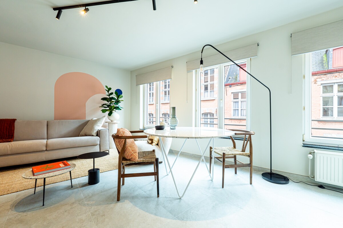Charmant et chaleureux, ce petit logement situé au coeur de la ville de mons (à deux pas de la grand place) saura prendre soin de vous durant votre séjour. Il dispose d'un lit double en mezzanine et d'un canapé convertible, vous offrant ainsi la possibilité de voyager à 4. Vous y retrouverez tout le confort (dolce gusto, bouilloire électrique, micro-ondes et grill2/1, taque électrique, vitrocéramique, wifi, netflix, youtube etc.) La salle de bain est privative et séparée par le pallier.