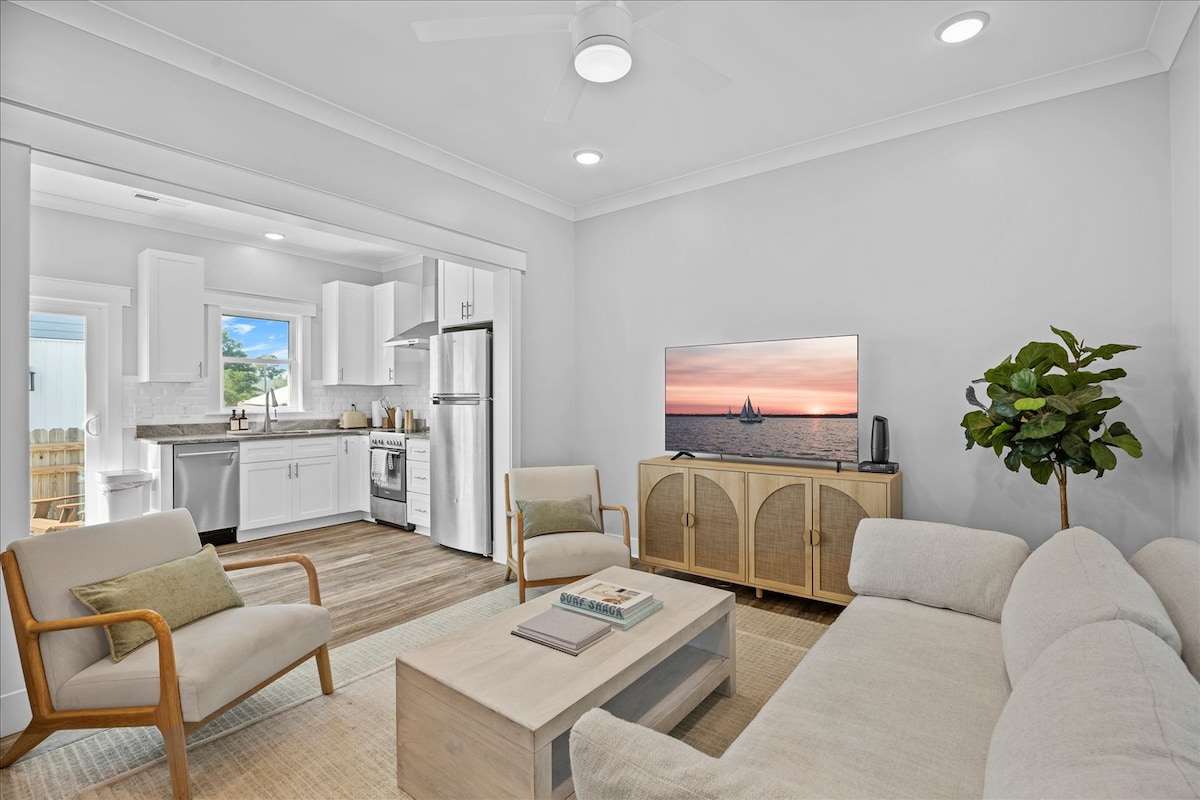 C'est l'appartement de mon oncle Happy. Il se trouve dans le centre-ville historique de Southport, à distance de marche des restaurants, des magasins et de la rivière Cape Fear. Situé dans une allée pittoresque juste à côté de la rue principale de la ville, ce joyeux petit chalet est niché au milieu de grands chênes vivants et à l'ombre de l'emblématique château d'eau de Southport. La maison dispose d'une chambre avec un grand lit. Le salon dispose d'un lit jumeau et de deux chaises. Il y a une cuisine complète et une petite salle de bain. Le magnifique front de mer et les parcs de Southport vous attendent.