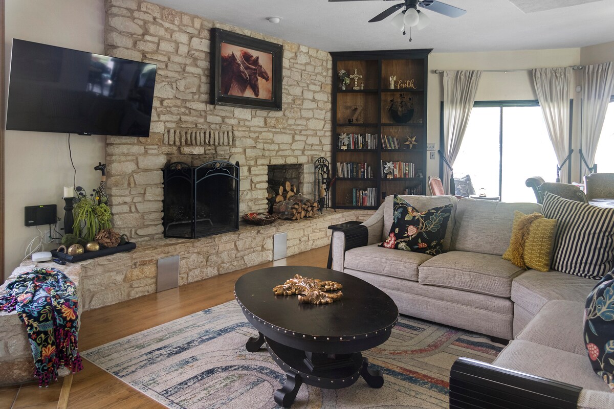 Bonjour ! Bienvenue dans le chalet confortable d'Aggieland. Cette atmosphère chaleureuse est l'endroit idéal pour se détendre. À seulement quinze à vingt minutes de Kyle Field et à sept miles du vignoble Messina Hof, vous avez le meilleur des deux mondes. Une entrée privée avec un abri auto vous donnera la liberté d'aller et venir. Il y a également un étang sur la propriété. Vous aurez l'impression d'être chez vous. Vous tirez une remorque ? Il y a beaucoup de place pour le stationnement et avec une entrée de porte codée, pas de soucis pour la sécurité.