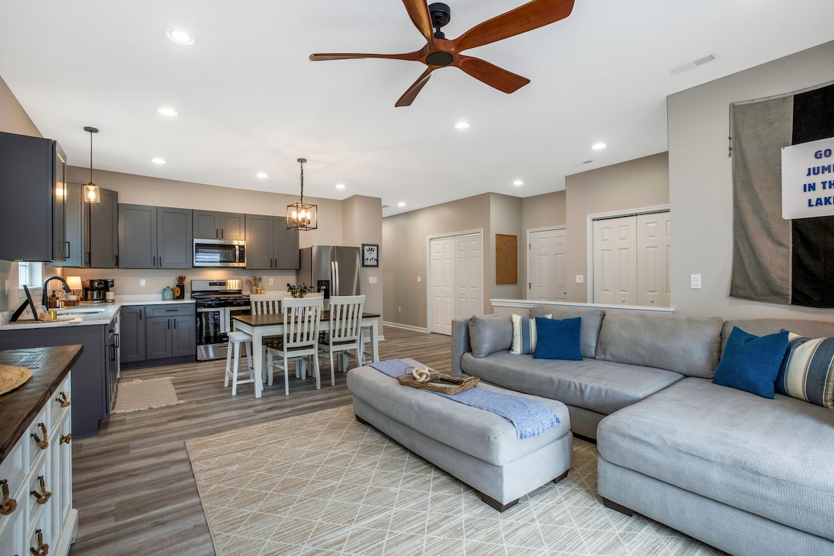 Nouvelle maison à quelques pâtés de maisons du North Shore State Park et de la rampe de mise à l'eau. À quelques pas des meilleurs restaurants, bars et vues sur le lac. Design moderne, maison confortable de 3 chambres avec grand espace repas et cuisine entièrement équipée. Offrant une belle cour arrière pour une partie de cornhole ou de repas à l'extérieur. La maison de style ranch rend cette propriété facilement accessible pour le déballage et la détente. Profitez du temps autour du lac, sur l'eau ou à vélo sur le sentier de 4 miles le long de la rive nord.