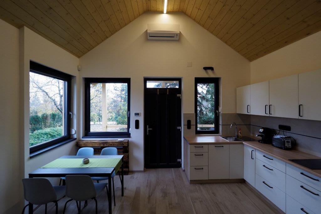 Zsíroshegyi Vendégház II - Nouveau chalet en bois luxueux dans un immense jardin privé, parfait pour la détente ! Au rez-de-chaussée : séjour avec cuisine ouverte, table à manger et canapé convertible en lit double. La salle de bain est également à cet étage avec une douche et un lave-linge. La chambre avec un lit double est au premier étage. Il y a une cheminée (à gaz), la climatisation et le chauffage au sol dans la maison. Taxe de séjour : 300 HUF/jour/personne (doit être payée à l'arrivée)