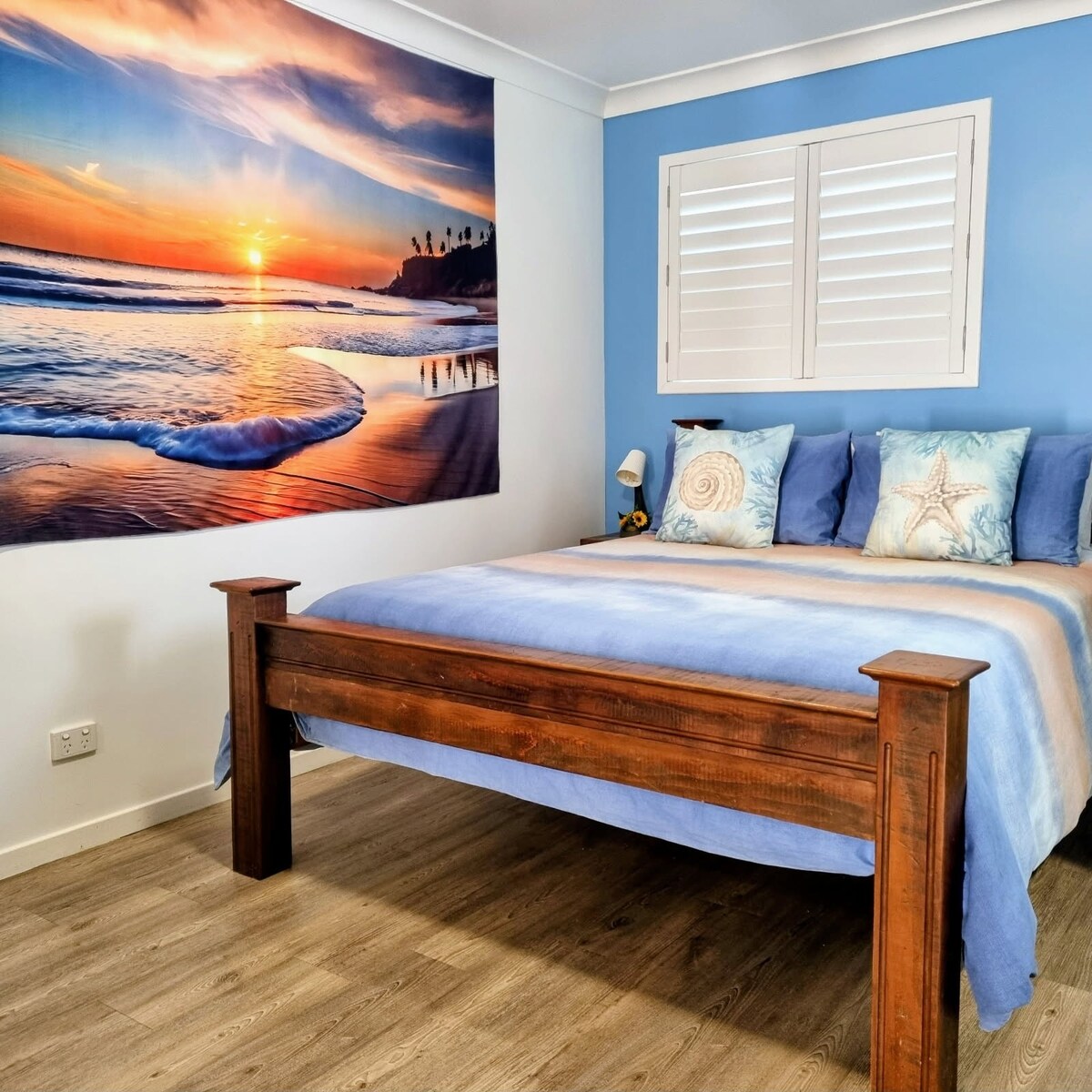 Cette chambre climatisée, lumineuse et aérée, avec salle de bains privative, est idéalement située sur la plage de Mudjimba. Autonome avec sa propre entrée privée, il est situé dans une rue très calme à un pâté de maisons du surf, des cafés, des restaurants et des boutiques. Les voyageurs peuvent se garer juste devant la porte. Les installations comprennent un bar réfrigérateur, une télévision et une connexion Wi-Fi gratuites, des DVD, un grille-pain et des installations gratuites pour le thé et le café.