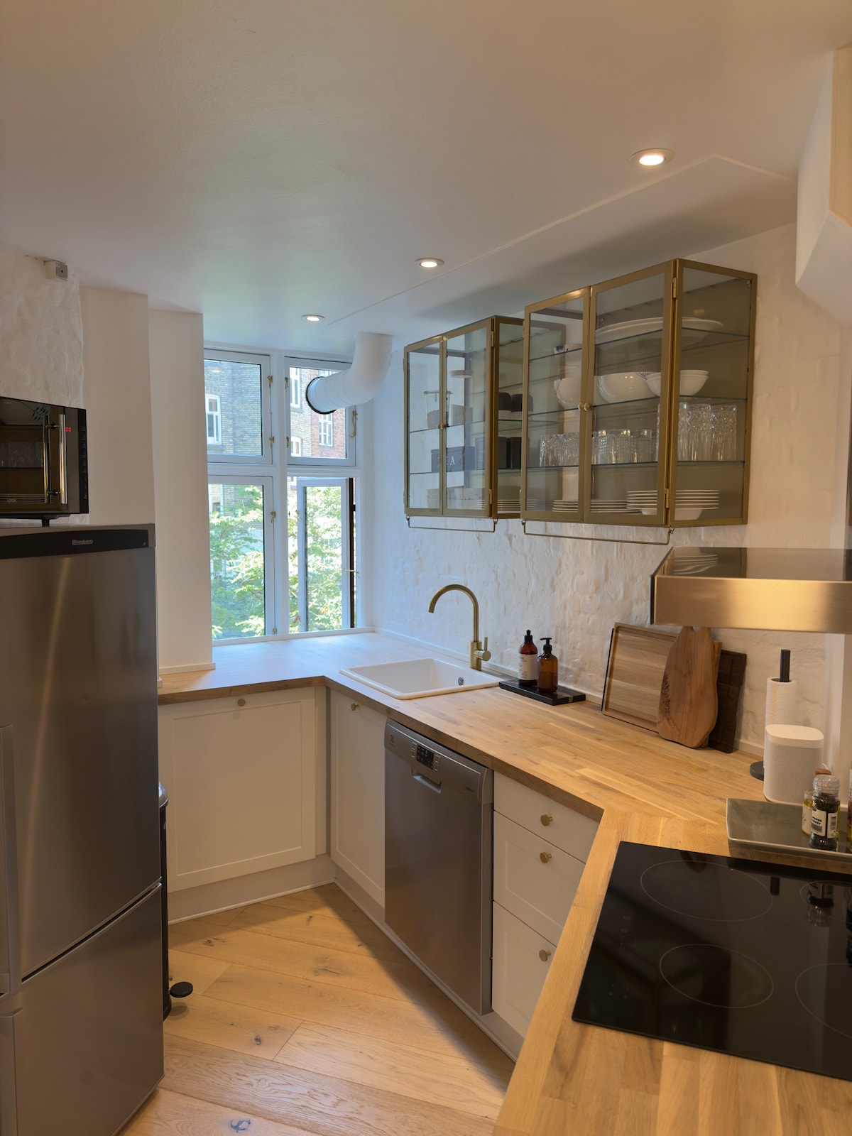 Nous sommes Aperon, un hôtel d'appartements situé dans une rue piétonne du centre de Copenhague, dans un bâtiment datant de 1875. Les appartements sont conçus avec soin, combinant un look contemporain avec des aménagements pratiques. Tous les logements ont accès à une cour et à une terrasse communes avec vue sur la Tour Ronde. Avec une arrivée autonome facile et des appartements entièrement équipés, nous offrons la facilité d’un logement privé, avec accès à nos services hôteliers.