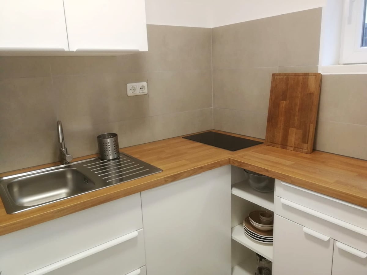 Ce bel appartement d'une chambre a été récemment rénové et se trouve à proximité immédiate immédiate de la Karlsaue, de l'Orangerie, de la Friedrichsplatz et de l'Université des Beaux-Arts. Les magasins sont également accessibles à pied. L'appartement est au rez-de-chaussée et dispose d'un parking privé devant la porte. Le lit queen-size confortable (1,40 m x 2 m) permet d'accueillir deux personnes. Nous sommes heureux de vous accueillir en tant qu'invité.