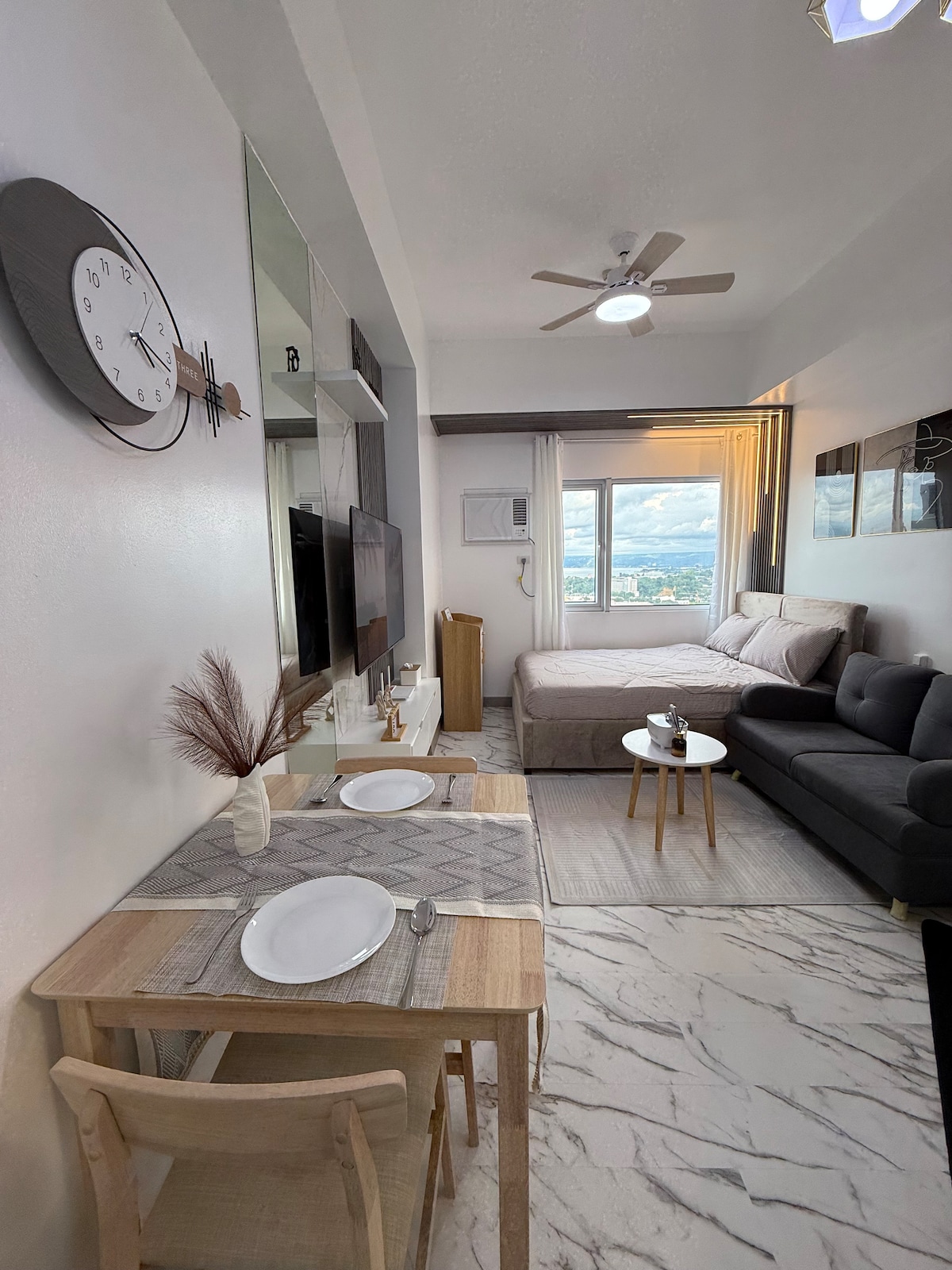 ❤️Welcome to our cozy studio @ The Loop Tower, Cagayan de Oro! Thoughtfully designed for solo travelers & couples who want a comfortable, calm, & relaxing stay. Enjoy peaceful sunset moments & beautiful city views. ⬇️ ROOM HIGHLIGHTS: 🪴 Studio Unit (22 sqm) – 18th Floor 🔸 Guaranteed Early Check-in 🔟AM 🔸 Guaranteed Late Check-out at 3️⃣PM 🔸 Easy self check-in w/ secure door code 🔸 3–10 minutes to Limketkai Mall 👉 Near transport terminals for Dahilayan & the Airport Shuttle Bus