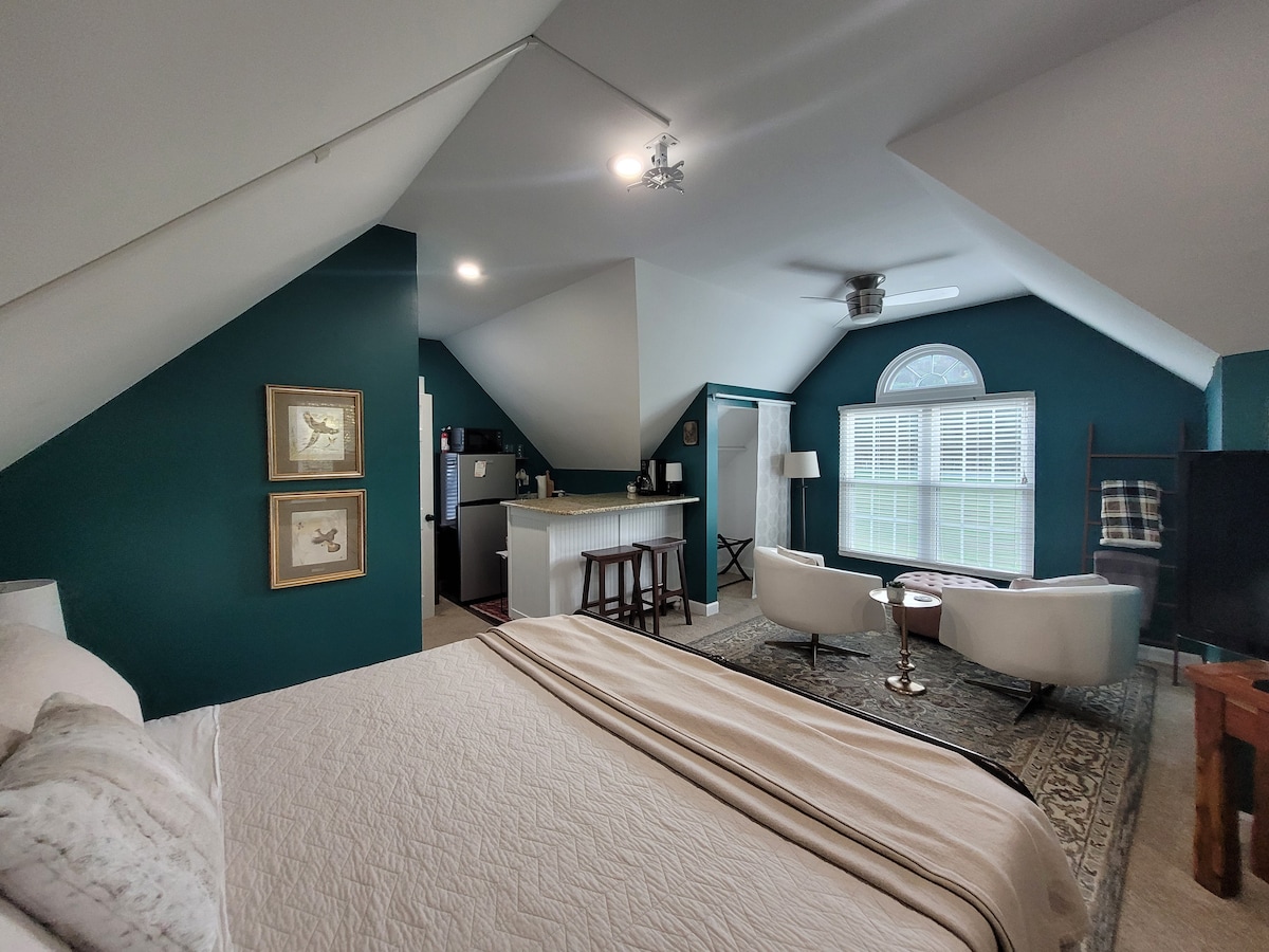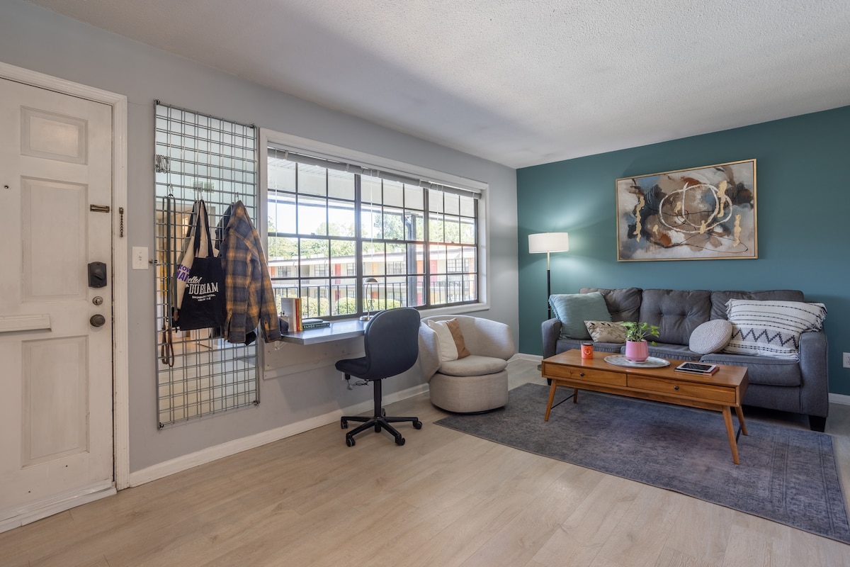 Une suite d'une chambre avec une salle de bain complète et une kitchenette attenante à notre maison avec sa propre entrée séparée. Situé à moins de 5 minutes en voiture du centre-ville de Durham avec un accès facile pour ceux qui préfèrent voyager à vélo ou à pied jusqu'au sentier Ellerbee Creek. Idéalement situé par rapport à l'Université Duke et Duke Medical. Parfait pour les séjours plus longs des professionnels en visite ainsi que pour les séjours plus courts pour profiter de tout ce que Durham a à offrir.