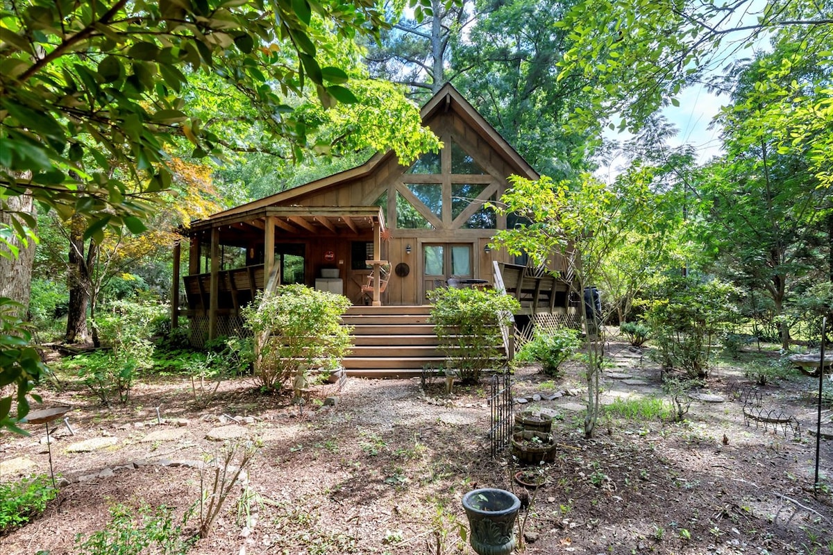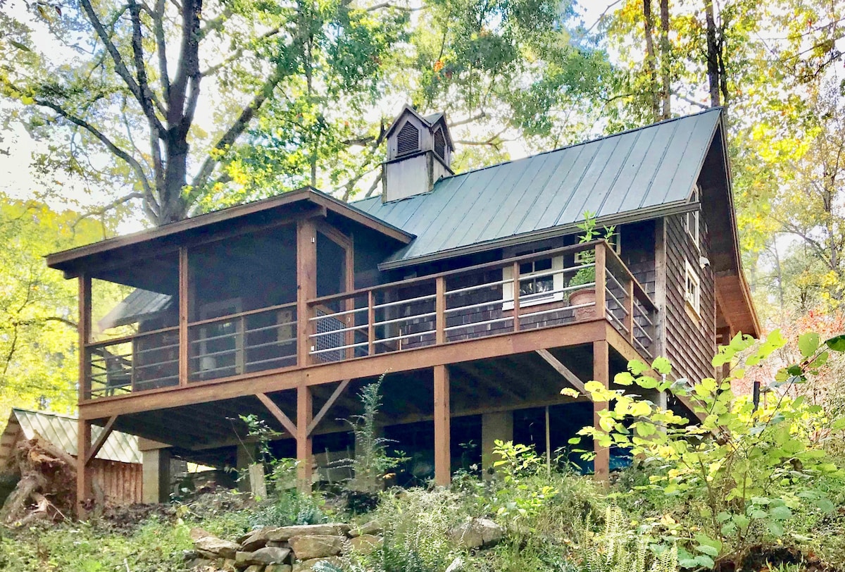 Escape to a peaceful hillside retreat nestled in the woods, where the melodies of farm animals and wild birds create a soothing soundtrack. Our stylish and cozy bungalow features three charming porches that invite quiet reflection. Enjoy an easy-to-use indoor compost toilet. Treat yourself to our rejuvenating sauna (+$40) and wander through our garden & along wooded paths. While close to town & I-40, this getaway promises a restorative escape immersed in nature’s serenity and thoughtful living.